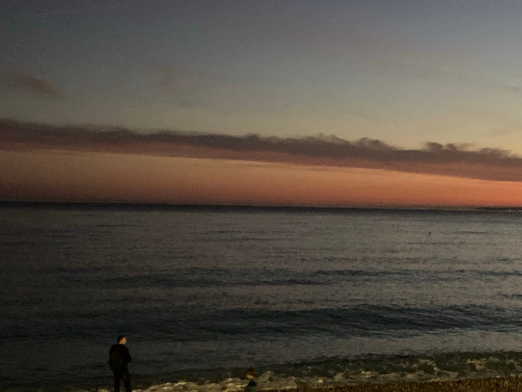 Beaucoup de gens déambulaient et regardaient ce coucher de soleil splendide qui s’offrait à nos yeux et durait dans le temps.