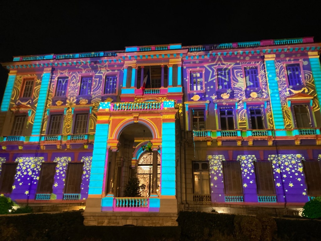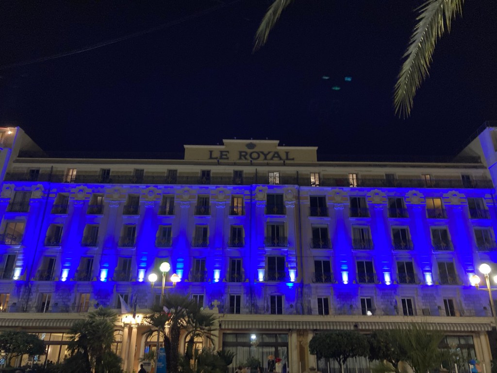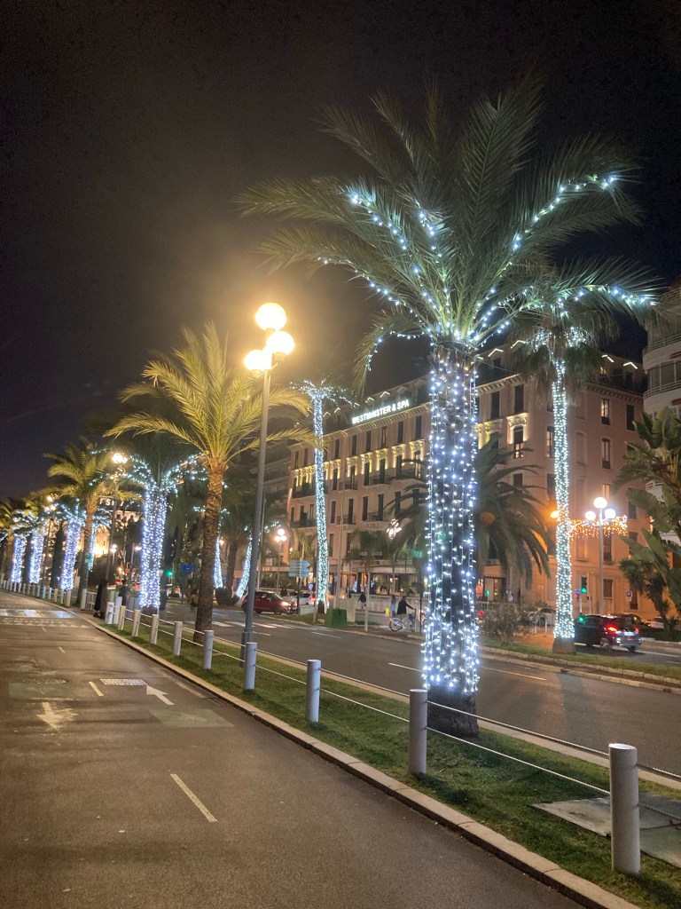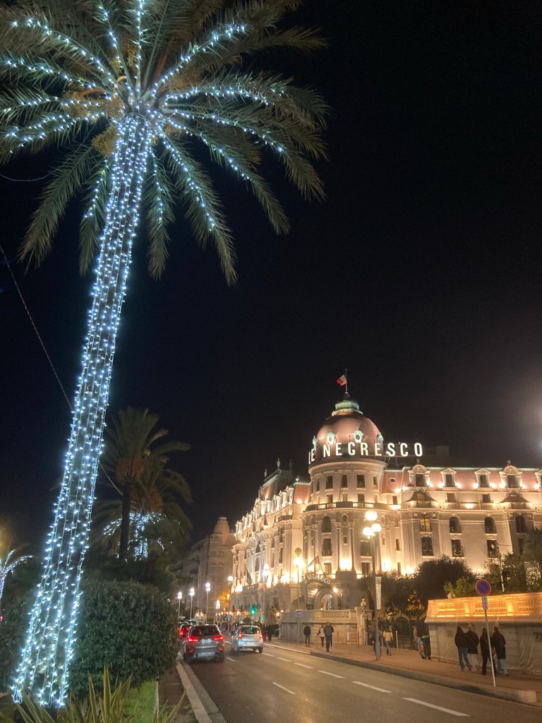 Continuant mon chemin on pouvait voir le Negresco de dos et l’entrée du musée Masséna enluminé de bleu turquoise et violet avec des étoiles dorées. Un mirage !