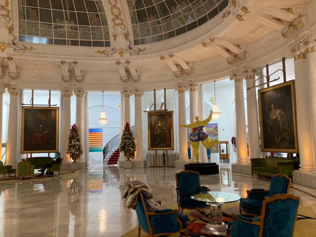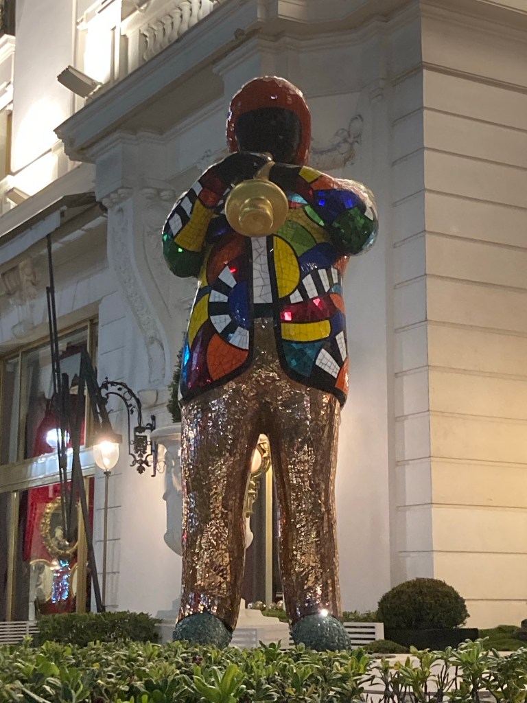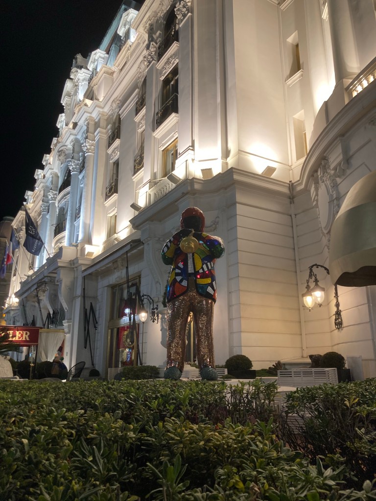 Et puis j’ai voulu aller découvrir le Negresco juste pour admirer l’intérieur. Tout d’abord à l’extérieur un jazzman en mosaïques nous regardait et faisait son show.