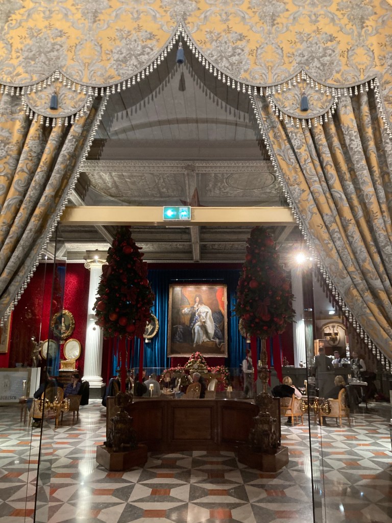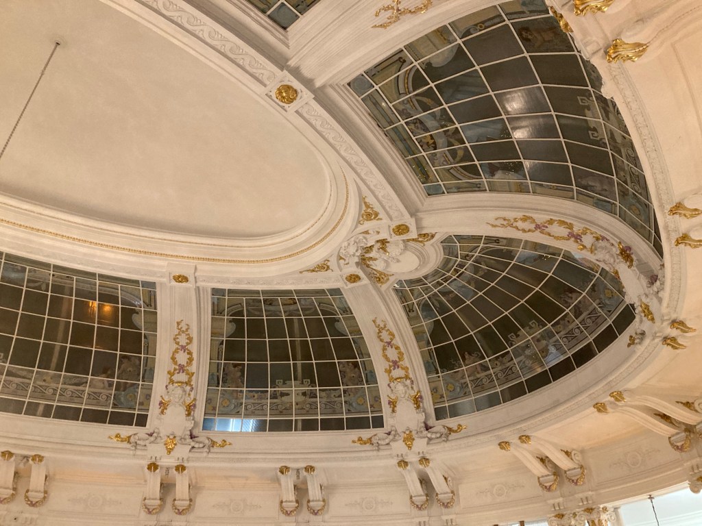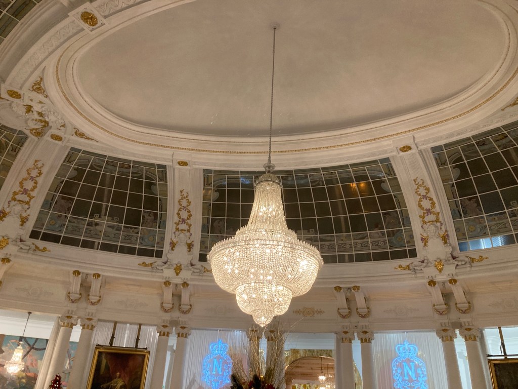 Puis entrant dans le hall on pouvait lever la tête pour voir les magnifiques verrières de la coupole. Au milieu un lustre en verre digne du château de Versailles trônait. Salon avec des œuvres de beaucoup d’artistes. On pouvait aussi voir un portrait de Louis XIV !