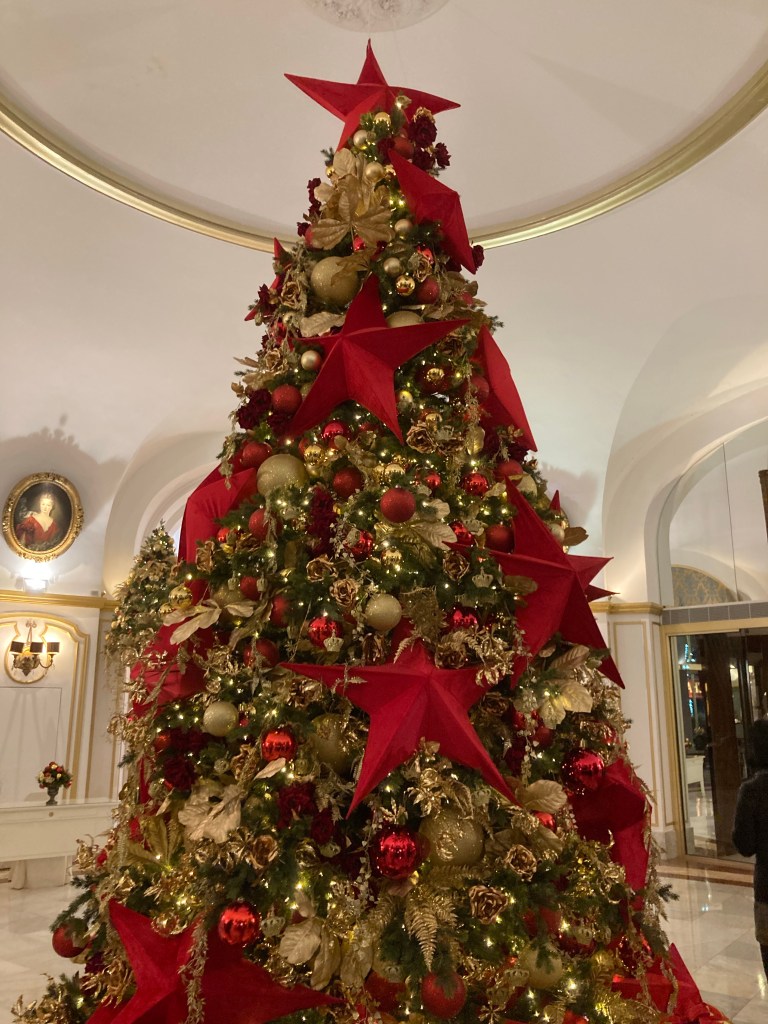 Un magnifique sapin de Noel ornait le tout avec ses jolis nœuds et ses étoiles rouges. Le tout doré. Un beau souvenir.
