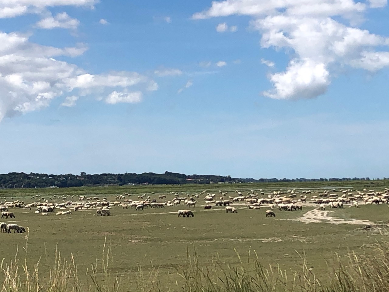 Très vite on se retrouve dans la nature dès que l’on sort de la ville et on croise près de la baie les bancs de moutons qui broutent l’herbe salée qui les rend si tendres à déguster et qui en font leur renom.