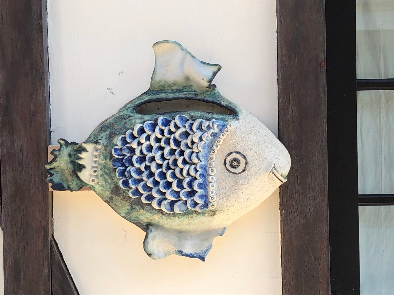 La ville a quelques beautés : les jolies maisons de pêcheurs avec au fronton des dessins de phoques ou de dessins représentant les marins roulés par les flots, ou bien les rues qui montent et sont ornées de roses trémières et de jolies portes peintes en bleu ciel, rouge vermillon où un signe distinctif comme ce poisson en céramique fait office de boite aux lettres.