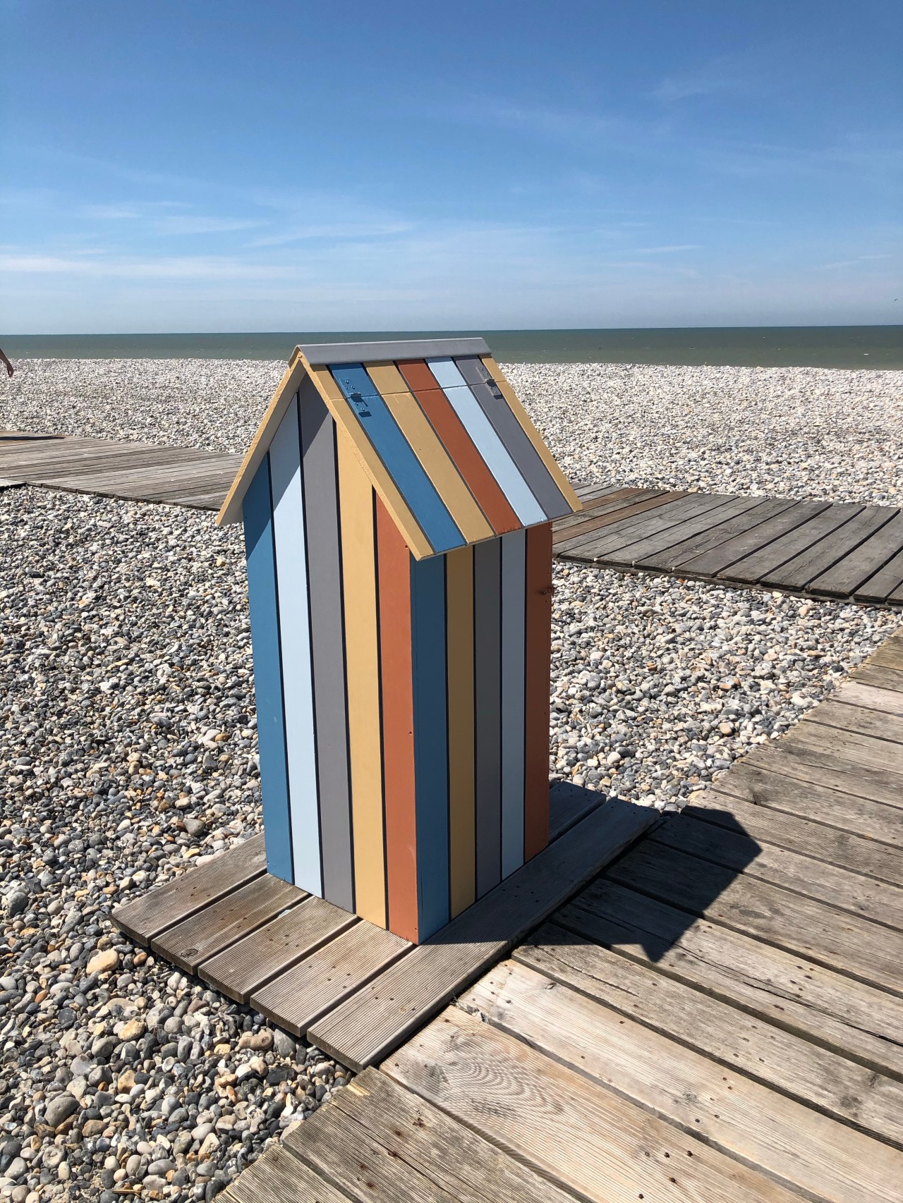 Puis j’ai filé vers Cayeux sur mer qui n’a rien de folichon à part ses plages où le galet est roi ! Seules les cahutes colorées om les vacanciers se réfugient pour se reposer ou aller se baigner a du charme. Ces maisonnettes ont toutes un nom : les zéléphants, Abbeville, Dax, Vauquois, Vitry…. Des noms évocateurs des régions de France ou d’ailleurs.