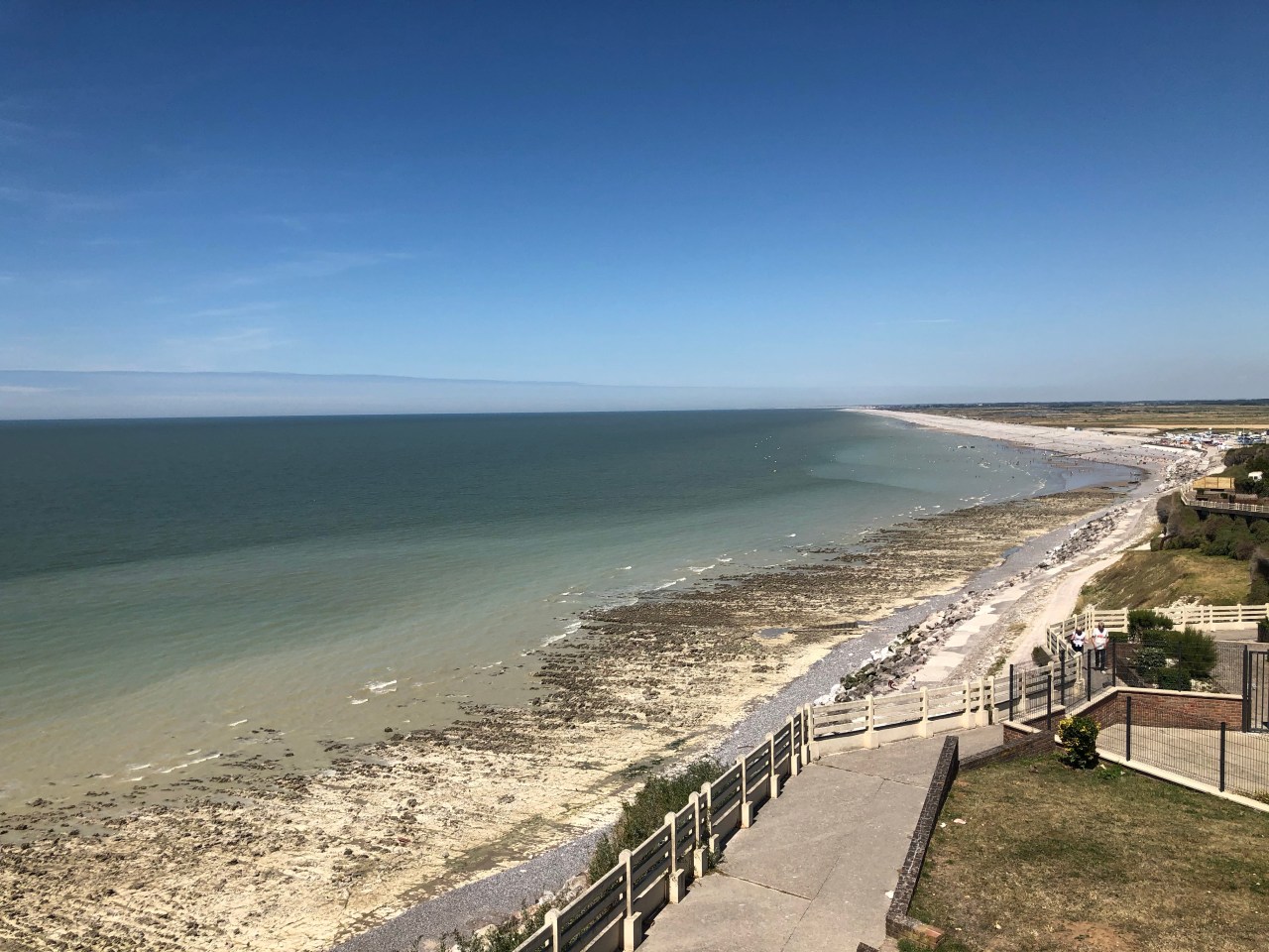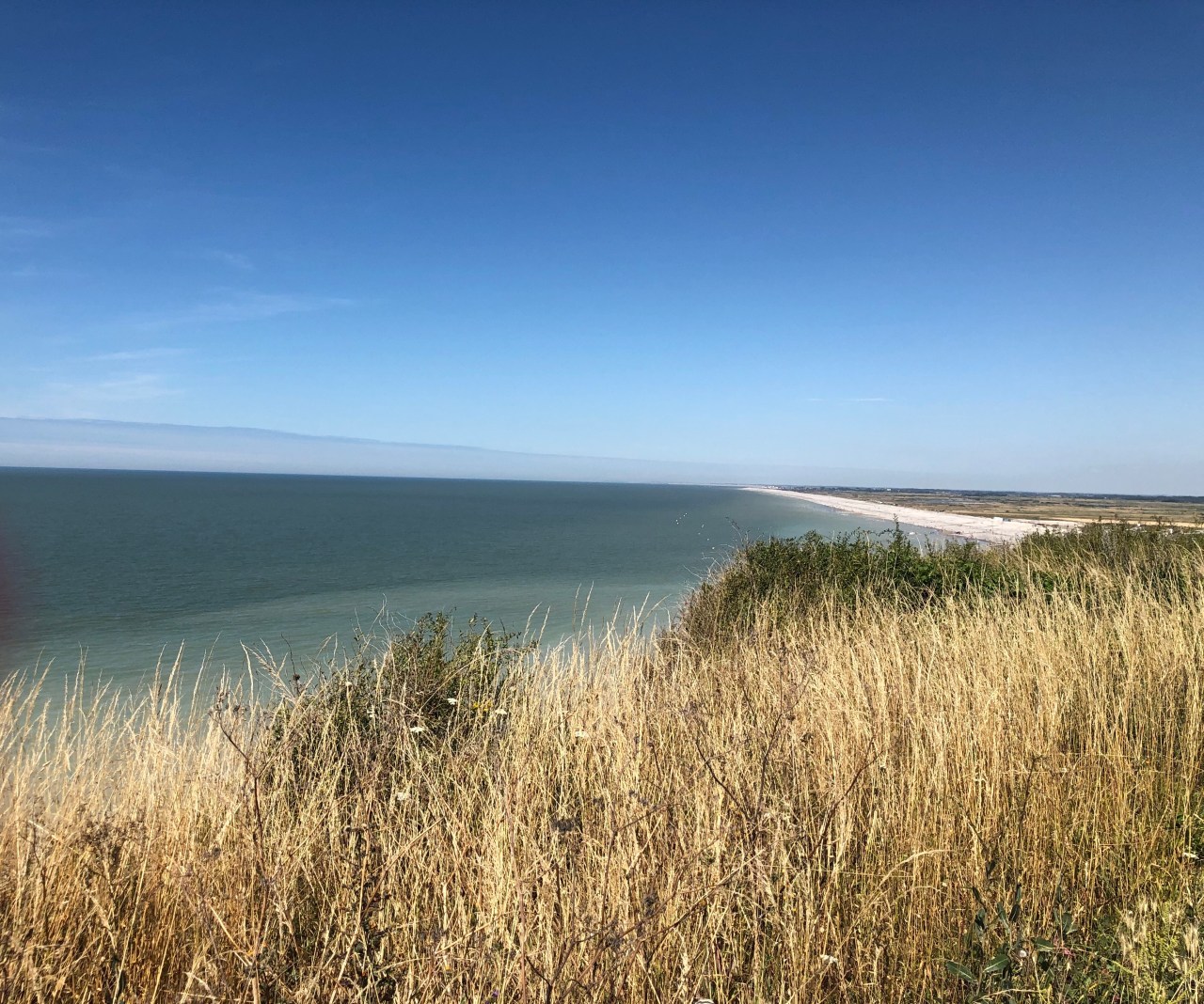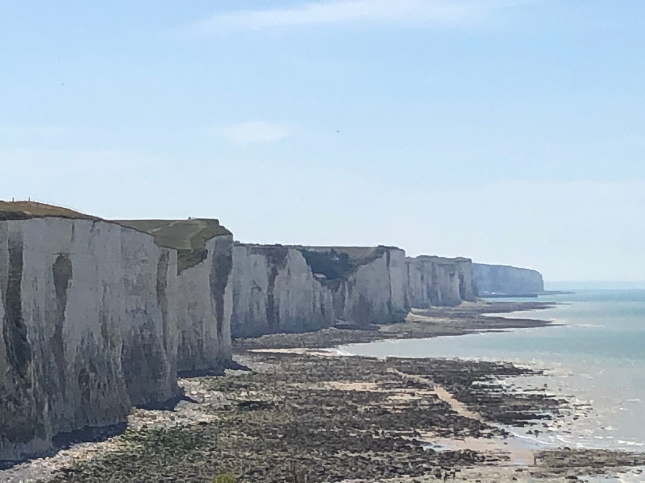 Et à gauche les falaises blanches hautes nous faisaient face et regardaient vers l’Angleterre.