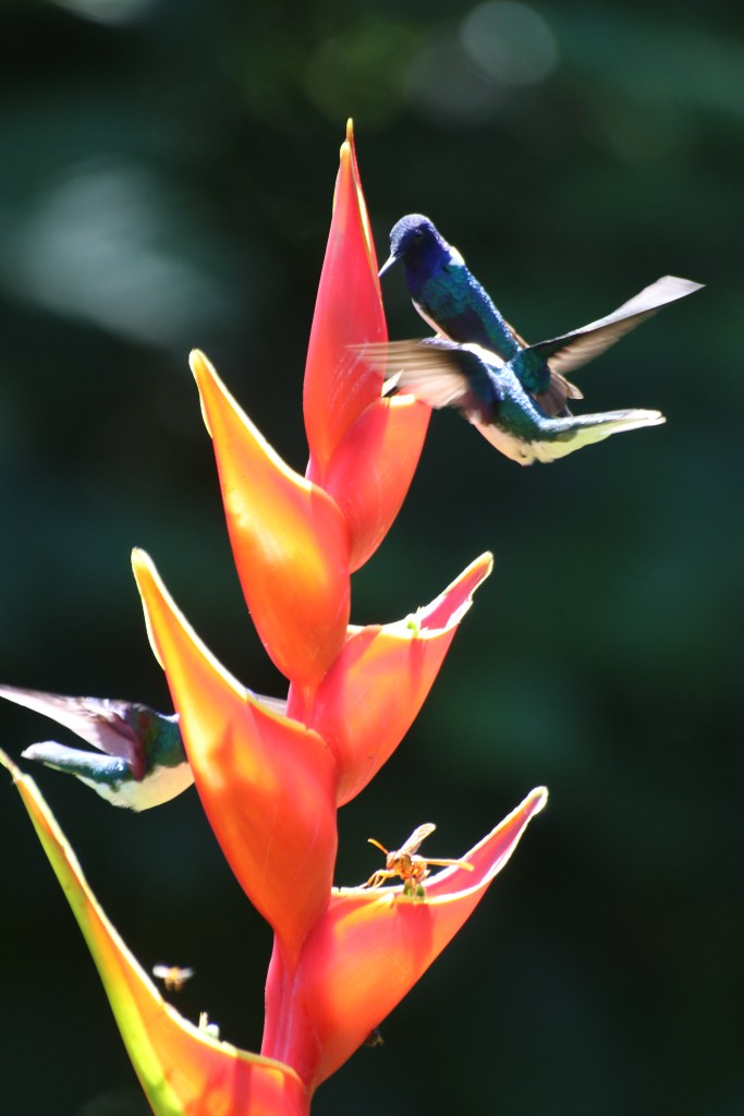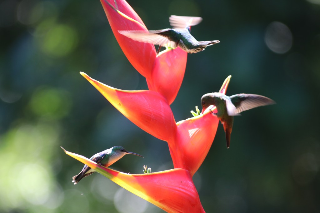 Il faut savoir qu’il existe 53 espèces de colibri au Costa Rica répartis sur tout le pays. Ses ailes battent 60 fois par secondes – des vrais bombes ! Son cœur bat 1200 fois par minute et il a le plus gros cerveau versus sa taille. Il se nourrit toutes les dix minutes et consomme l’équivalent de son propre poids en nectar de fleurs.