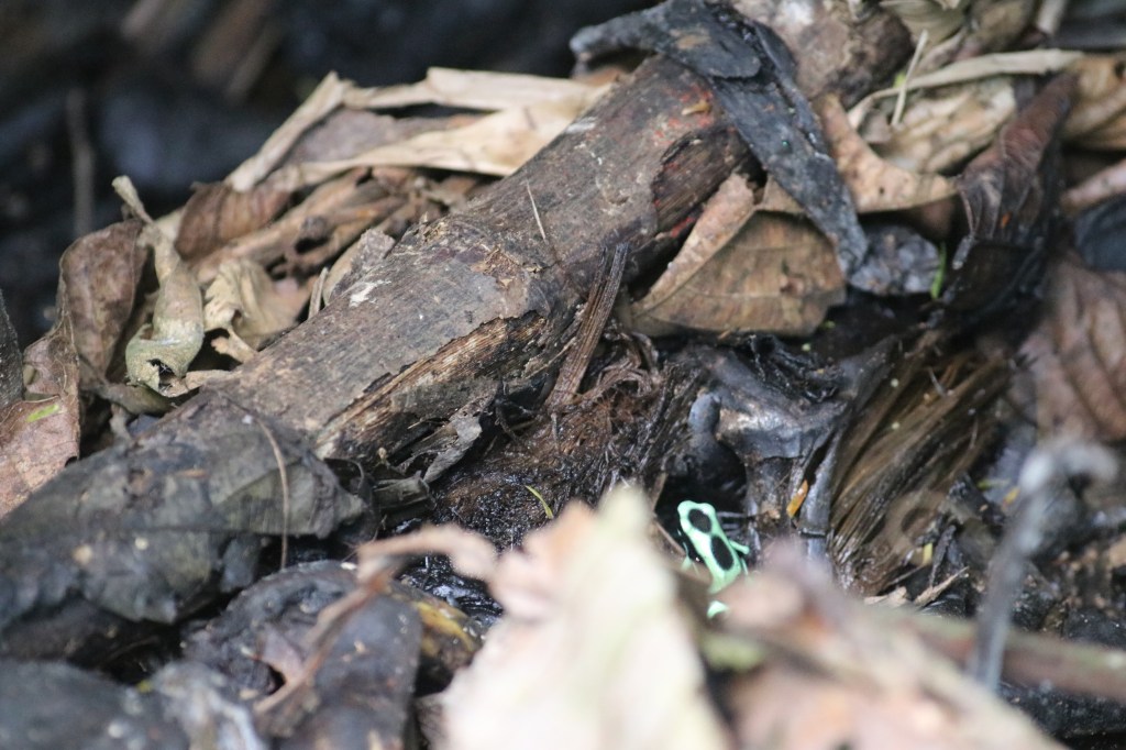 Dans ce parc on trouve des bananiers, des palmiers avec leurs racines qui leur permettent de bouger et de s’accrocher comme les mangroves, au gré du vent, des arbres immenses sortes de ficus. La nature est partout et on a pu admirer des grenouilles vertes venimeuses, des fourmis qui tirent des feuilles toute la journée et même la nuit jusqu’à épuisement. Elles portent 5 à 10 fois leur poids et on voit à ses pieds une armée en marche de mini feuilles vertes. Attention quand elles piquent elles mordent et cela fait un mal de chien. Une forêt comme une jungle nous regardait de toute sa hauteur et les arbres peuvent atteindre 20 mètres. Impressionnant comme la nature reprend ses droits et recrée un eco-système en trente ans.