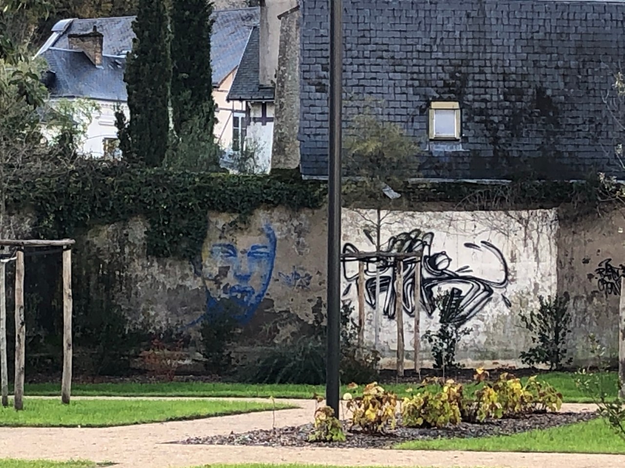 Et tout autour cette place et parking refait où n peut trouver du street-art avec ce visage bleu !