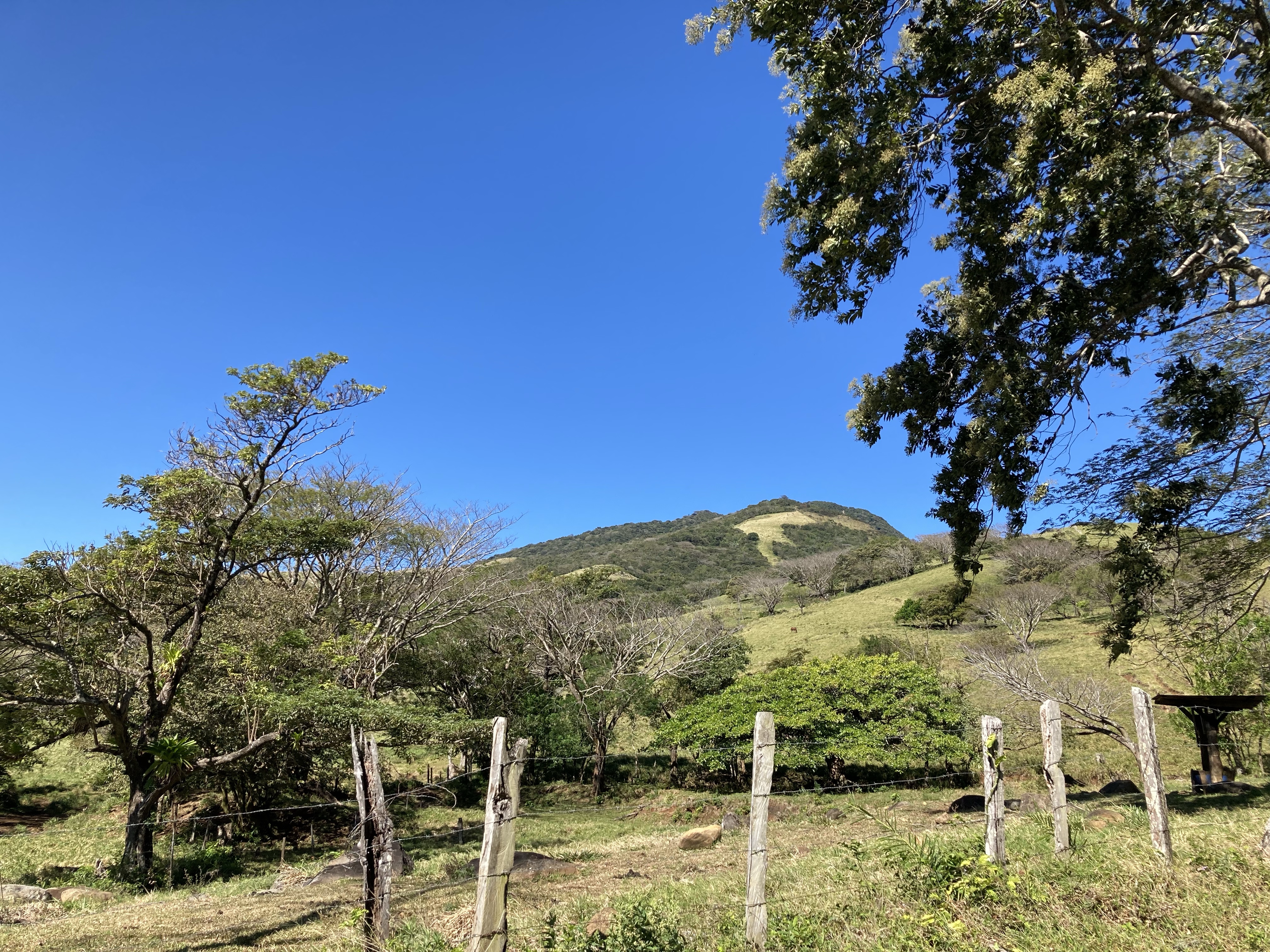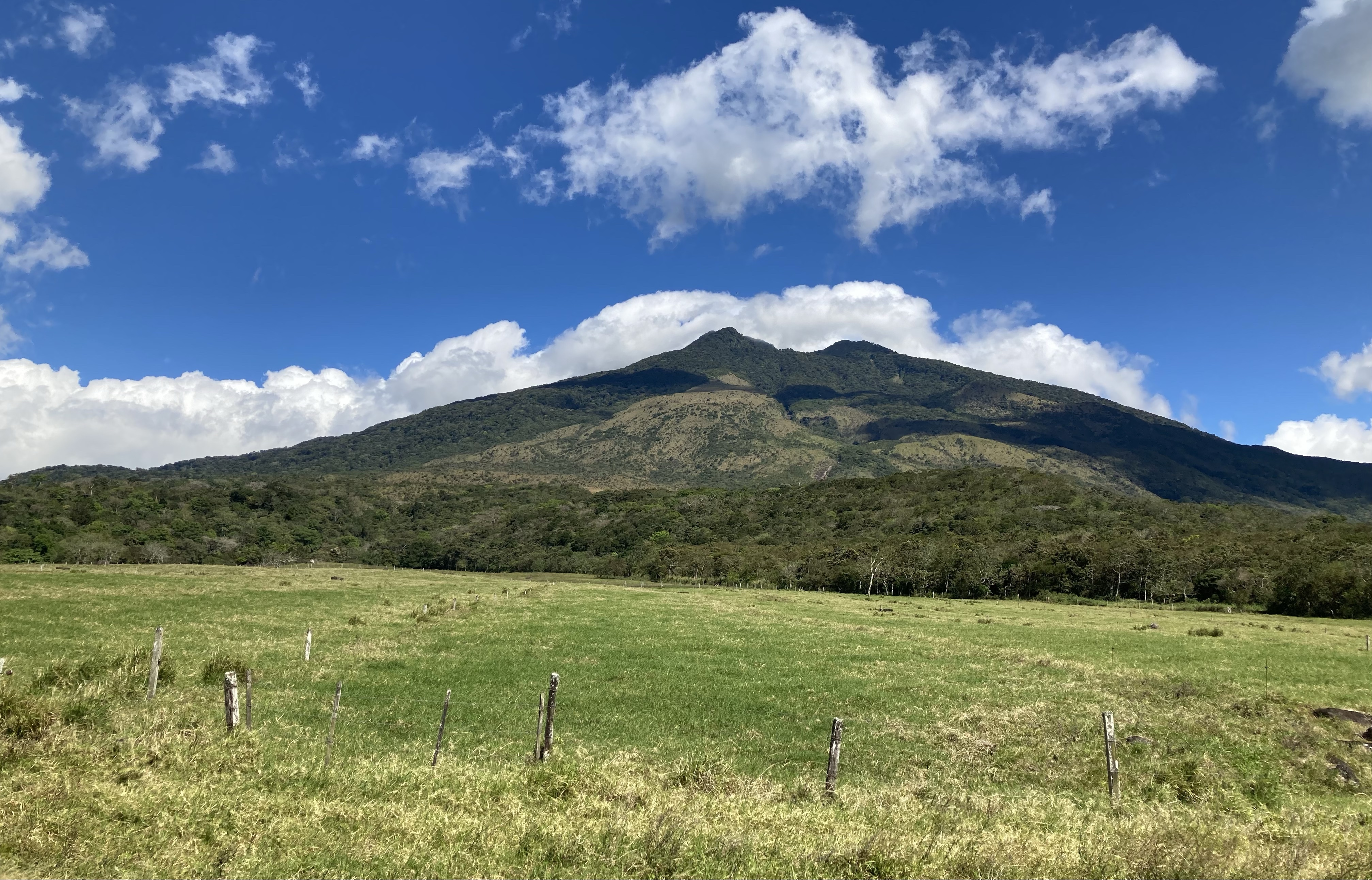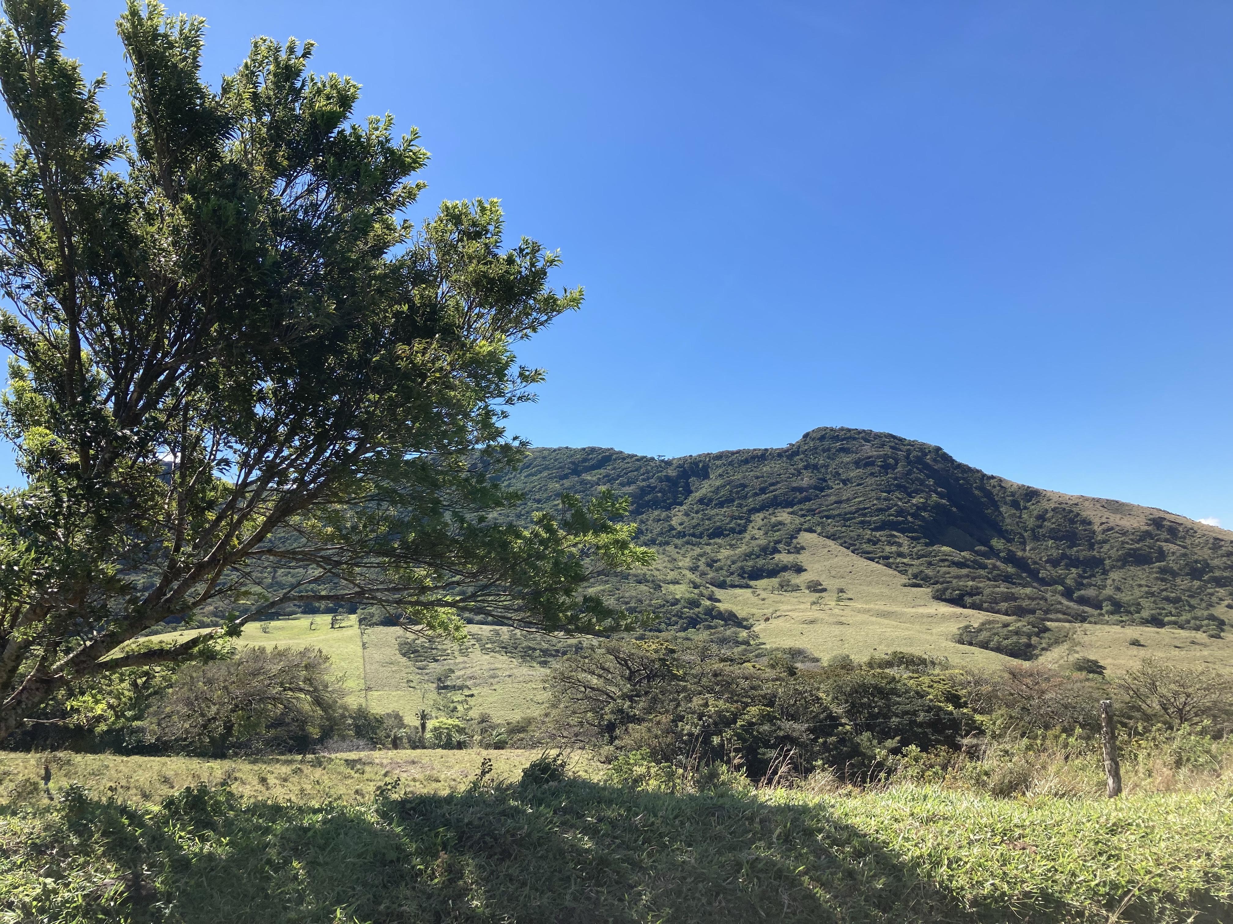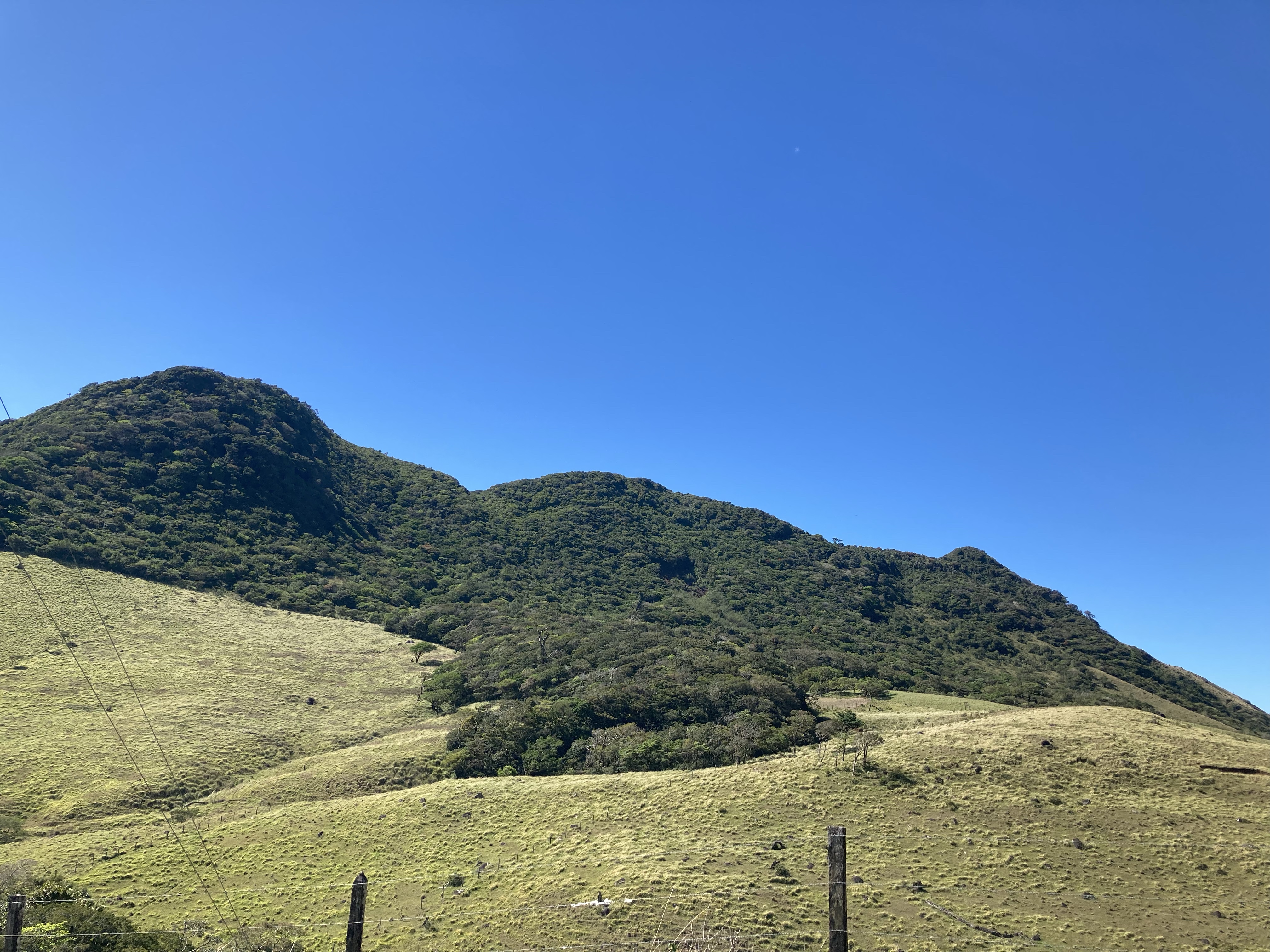 Les nuages lèchent les sommets des vallons et on dirait que la montagne fume. Ce n’est pas le cas car je crois que le volcan Miravalles est éteint. Il fait partie de cette chaine de volcans qui traversent le Costa Rica du sud au nord en remontant vers le Nicaragua.