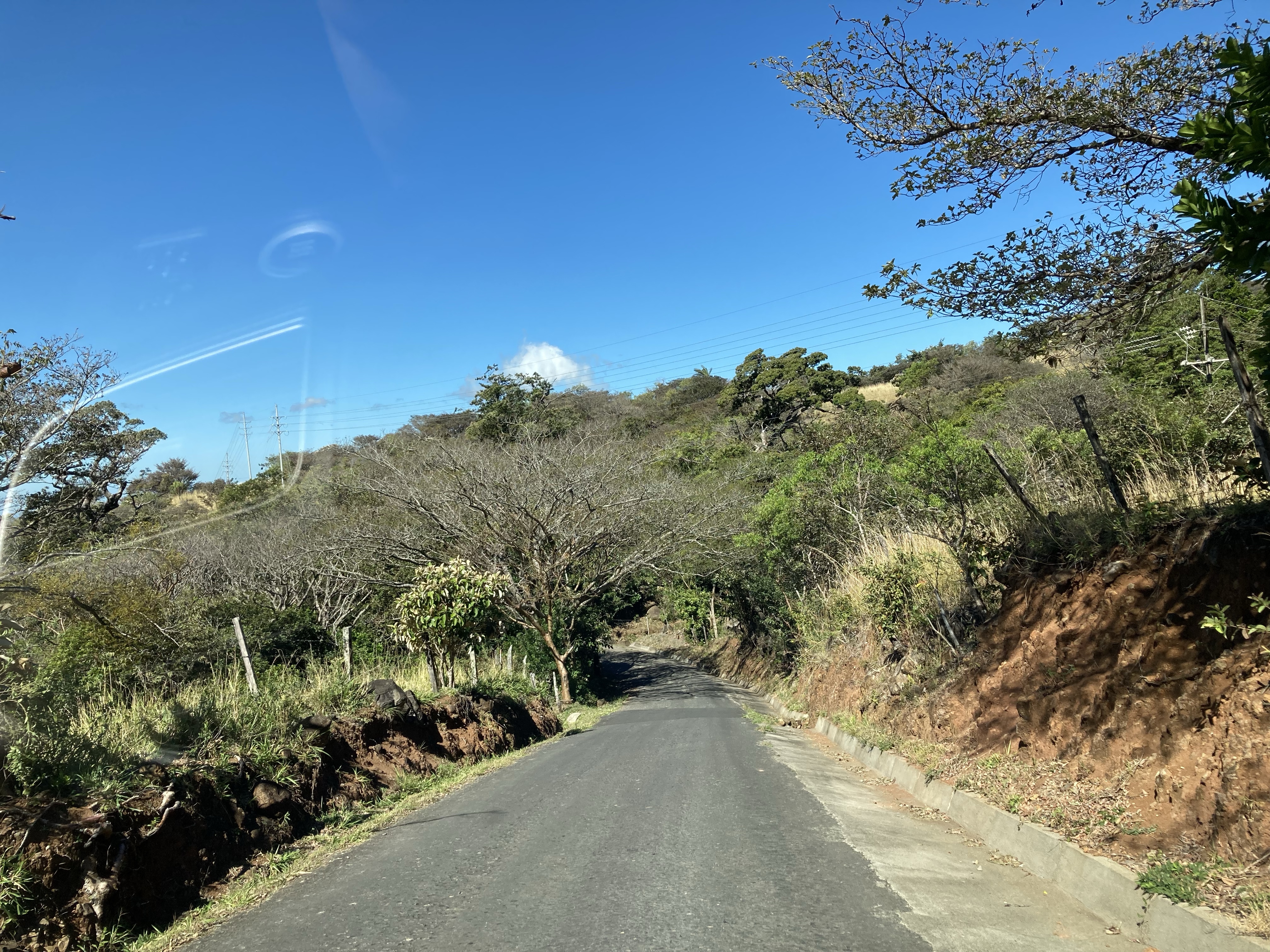 La route de Capulita est extraordinaire. Tout d’abord c’est une petite route transverse qui mène de Tenorio à Miravalles qui longe le volcan Miravalles. Elle monte et descend, tourne et il faut un moteur de voiture bien accroché pour certaines pentes ou montées.