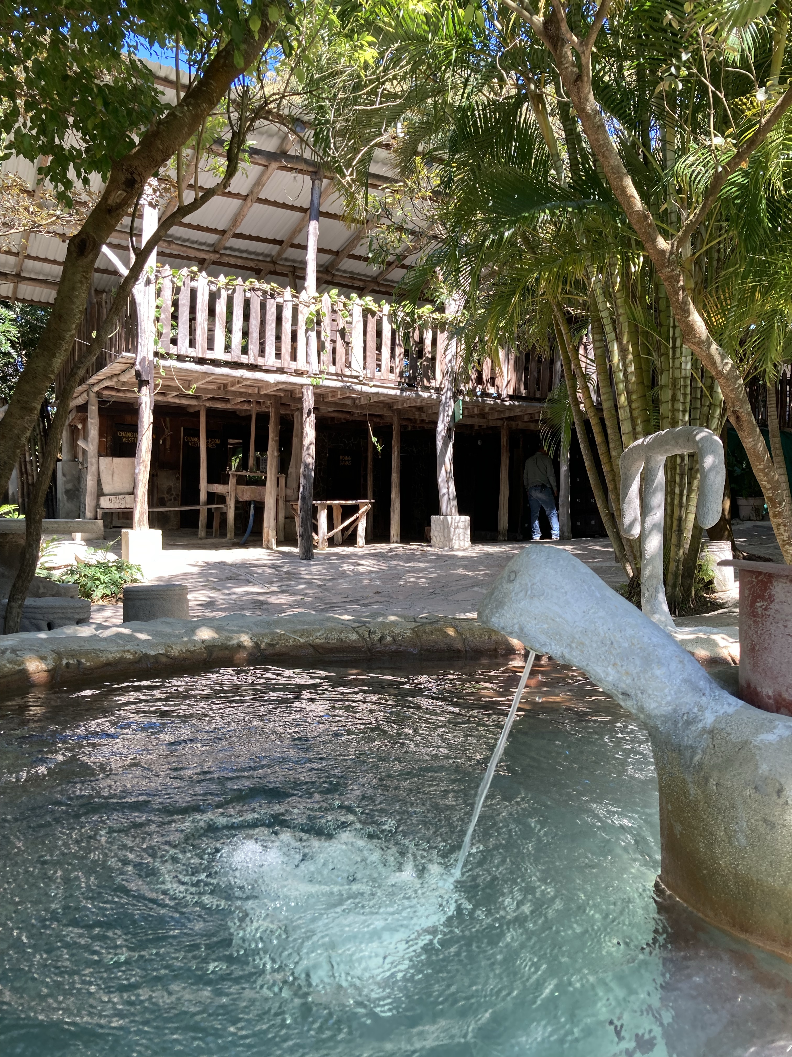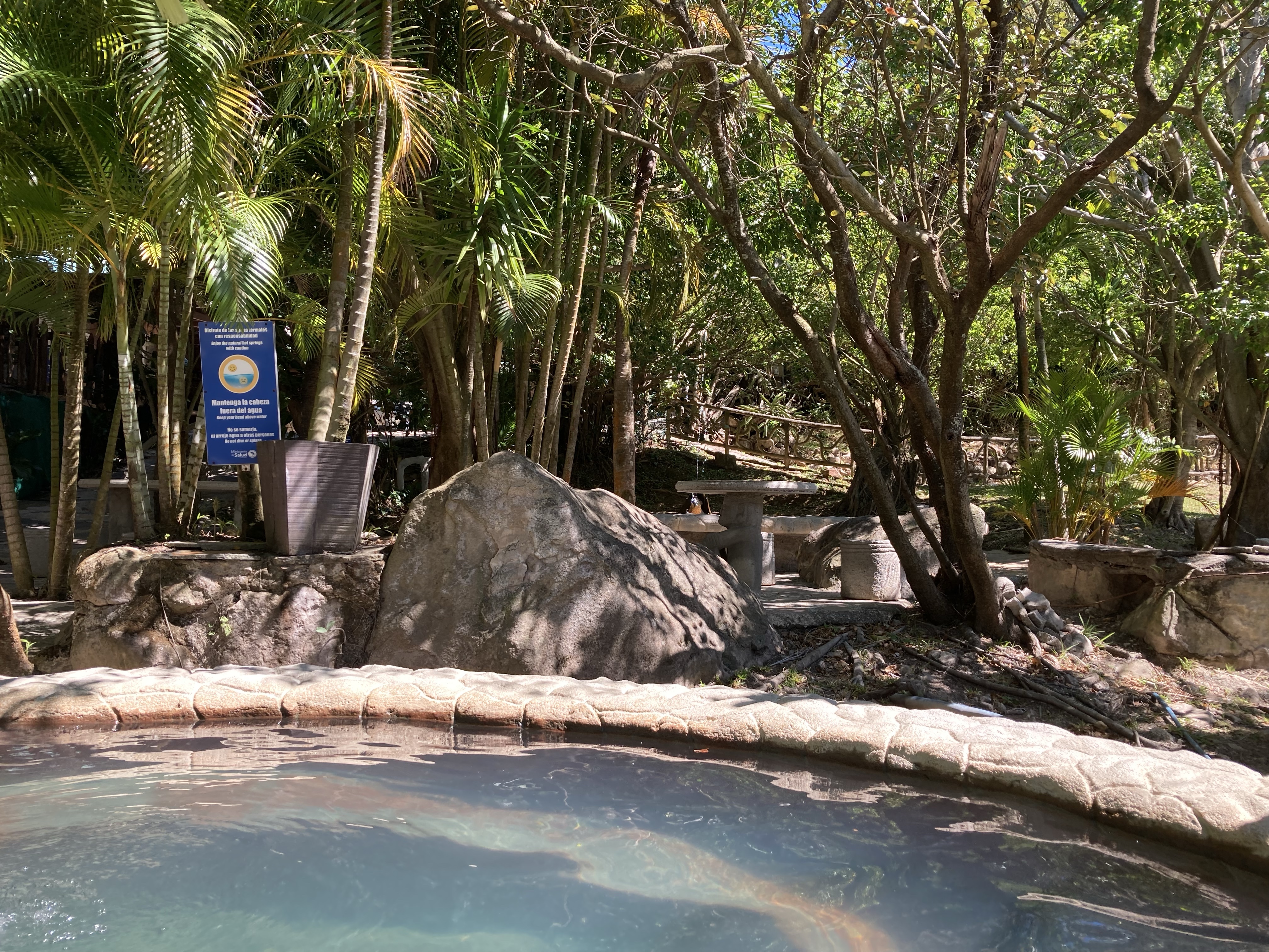 Trois petits bassins de températures différentes (du plus chaud au plus froid) sont les uns à côté des autres. On peut y rester le temps que l’on veut et moi j’ai joué des températures froides en changeant de bassin toutes les dix minutes. Il y a même un sauna dont le toit est recouvert d’un gros lézard vert sorte d’iguane. J’y ai rencontré des Russes américains qui venaient de manière régulière ici et des Polonais. L’Europe de l’Est en voyage au Costa Rica. Ça m’a fait rigoler !