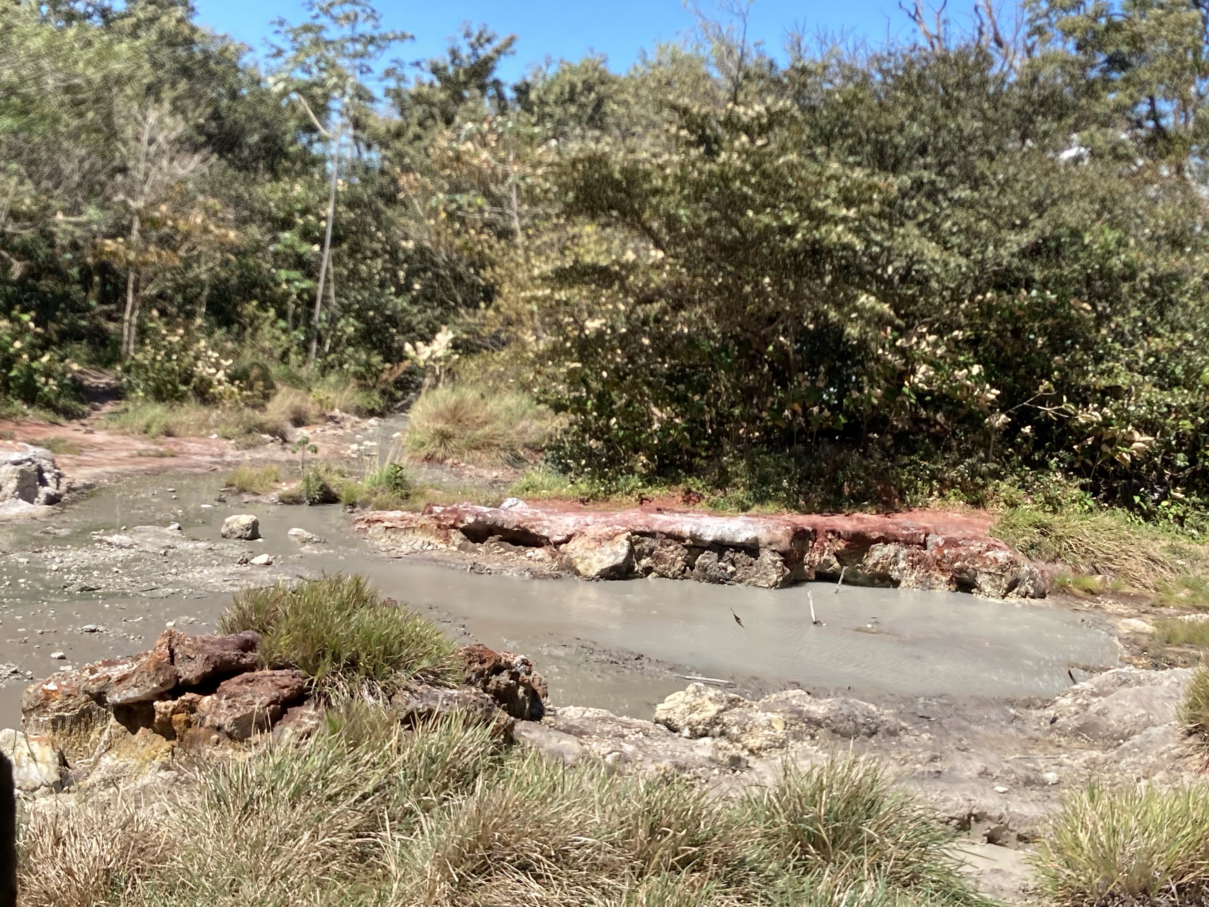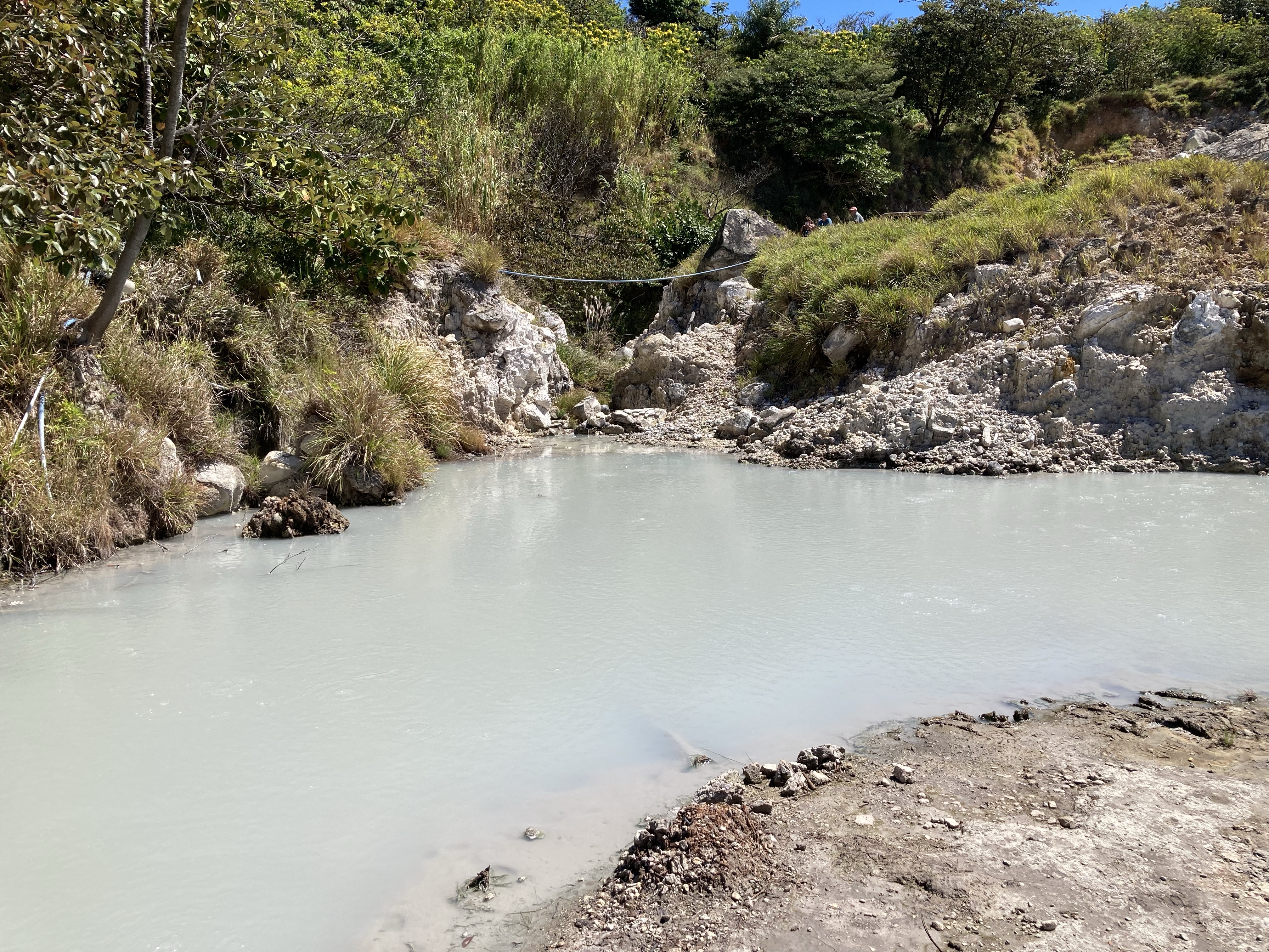Plus loin il y a des grands bassins d’eau chaudes, froides à température variable. Le tout sous des arbres immenses qui protègent de la chaleur et du soleil. Et sur les sentiers on pouvait apercevoir des geysers qui fumaient ou la boue qui bouillonnait.