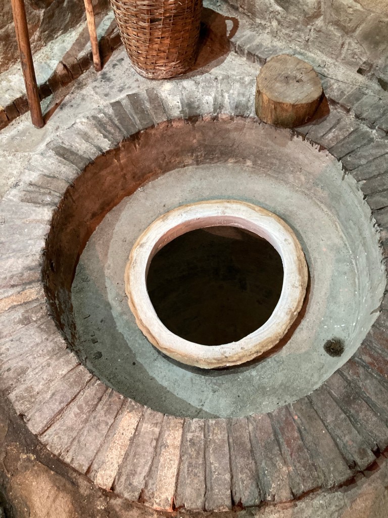 Puis nous avons découvert au sous-sol de la maison la cave à vin. De multiples jarres enfoncées dans le sol de tailles différentes.