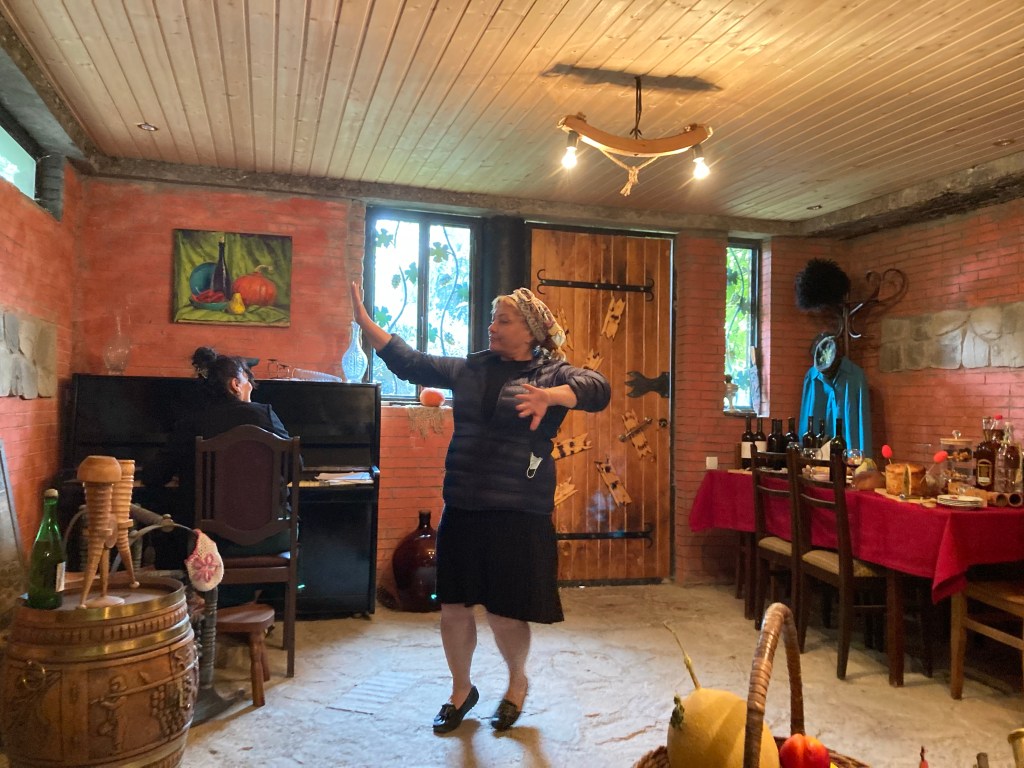 Parmi les pérégrinations en Géorgie nous sommes allés tester du vin non pas comme nous pourrions l’imaginer en France mais chez une femme dont la famille a pour tradition depuis son grand-père de réaliser du vin dans des jarres dans le sol.