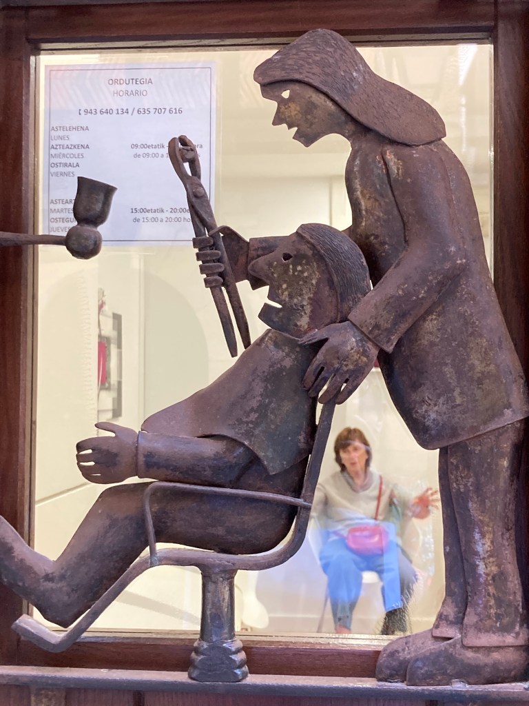 Dans cette rue il y a des mini-enseignes comme celle du dentiste avec sa pince arracheuse de dents !