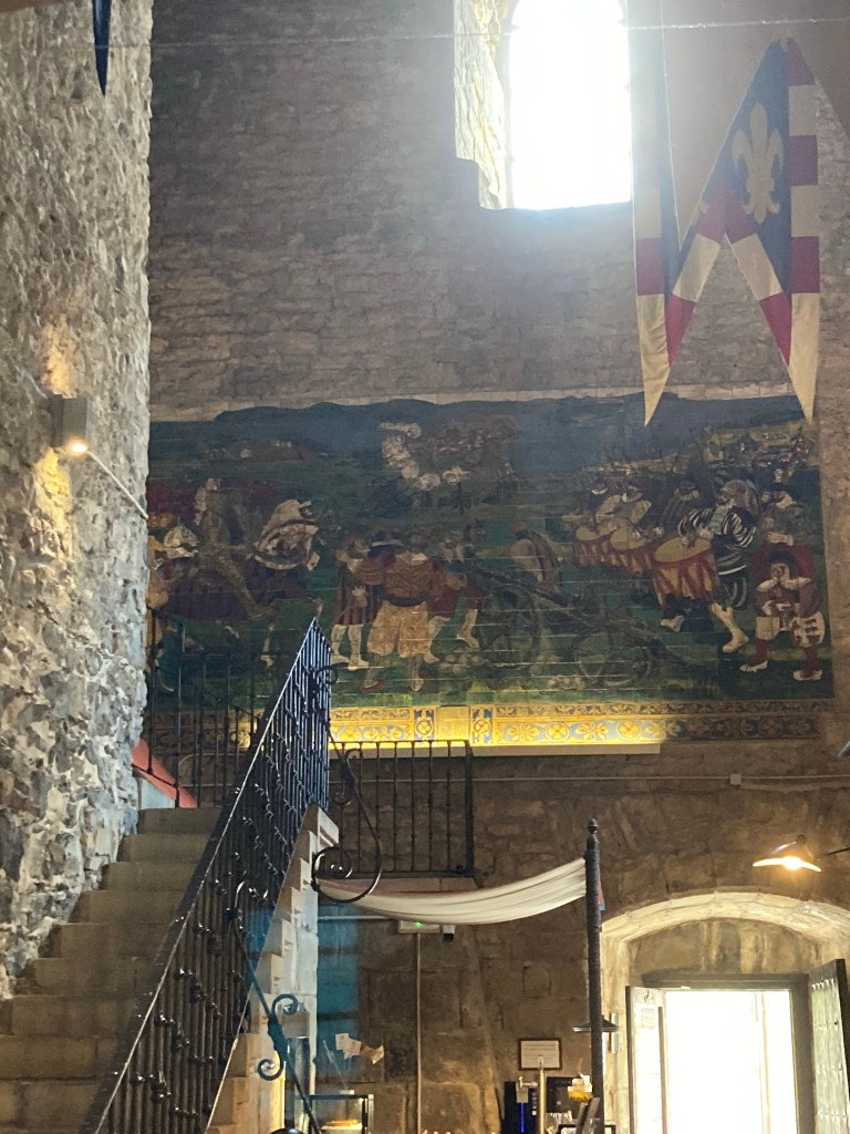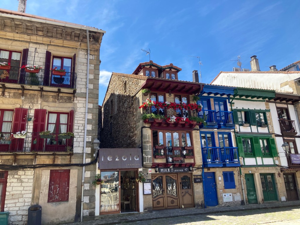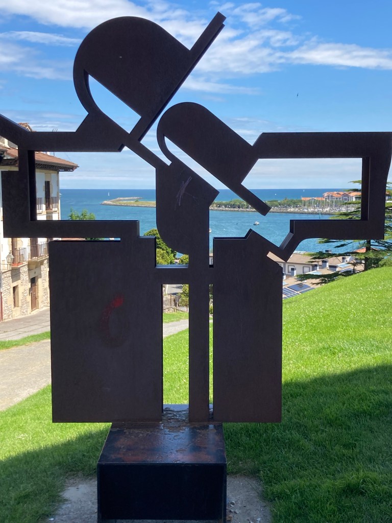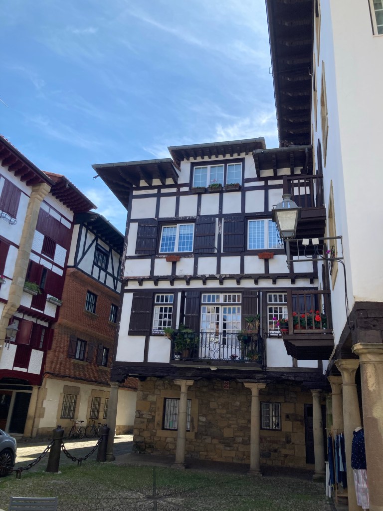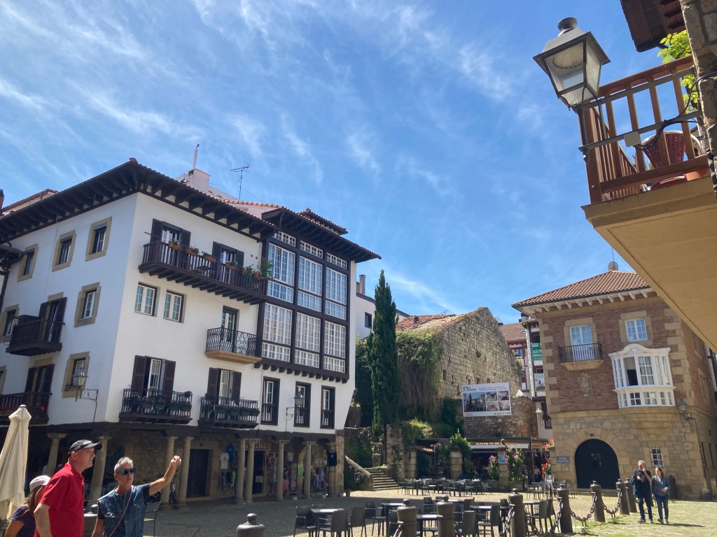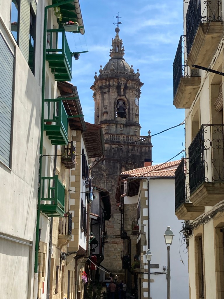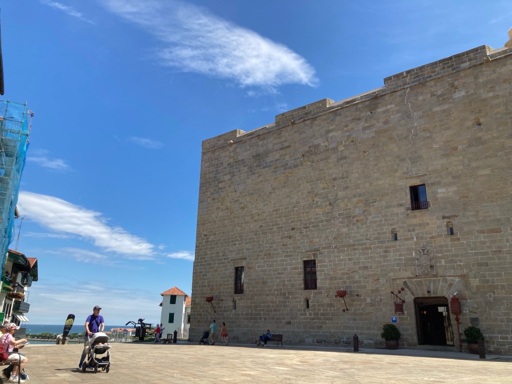 Puis j’ai filé vers la place d’armes où une vue sur la Bidassoa et sur Hendaye permettait de comprendre qui se regardait et qui faisait quoi. La tour énorme et plantée au milieu de la place. Cette tour a été transformée en hôtel et à l’intérieur il y a de très beaux étendards et de belles fresques bleues en céramique.