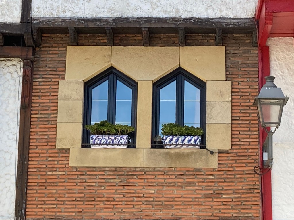 Les fenêtres aussi m’ont beaucoup plu car elles sont en forme de pointes sur un mur de briquettes rouges. Et j’ai aussi adoré les balcons en bois rouge et des volets rouges qui ressortent avec des ornements en pierre sable et qui représente aussi des blasons.