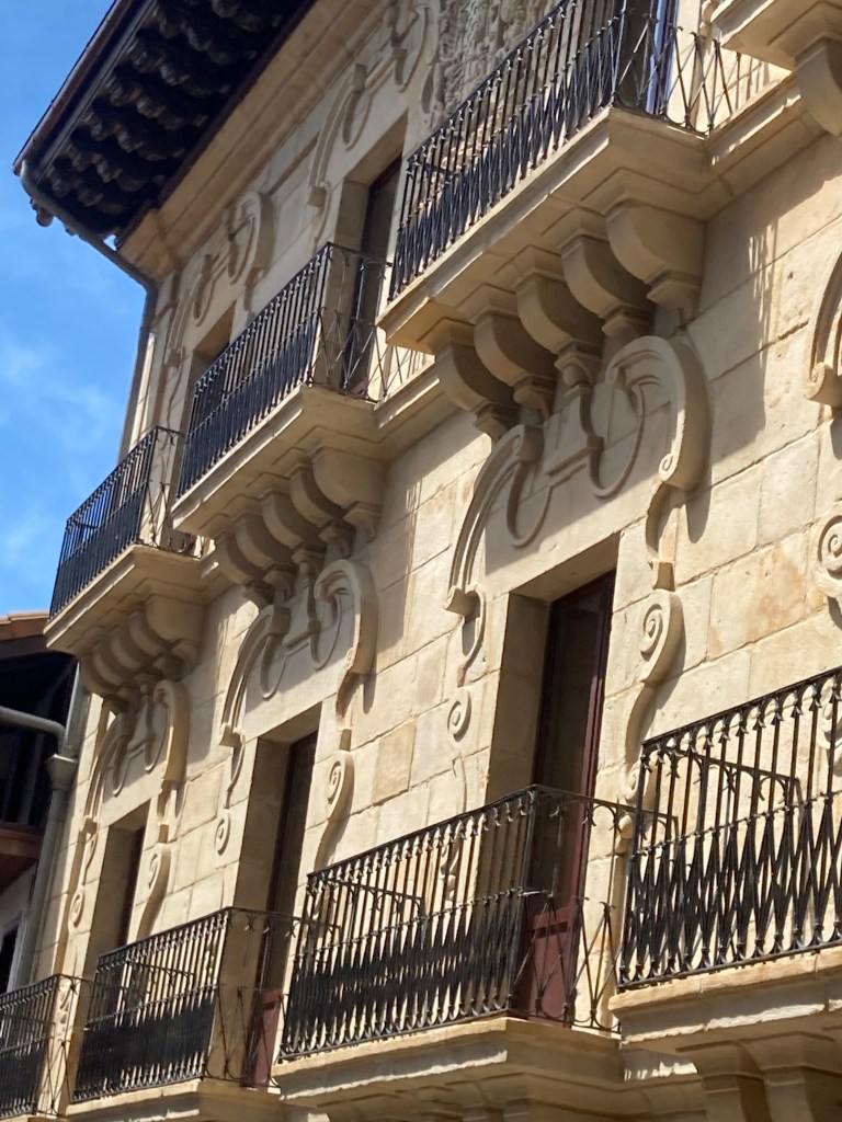 Les portes aux magnifiques colonnes doriques et au fronton me faisaient face et les balcons en fer forgé étaient magnifiques.