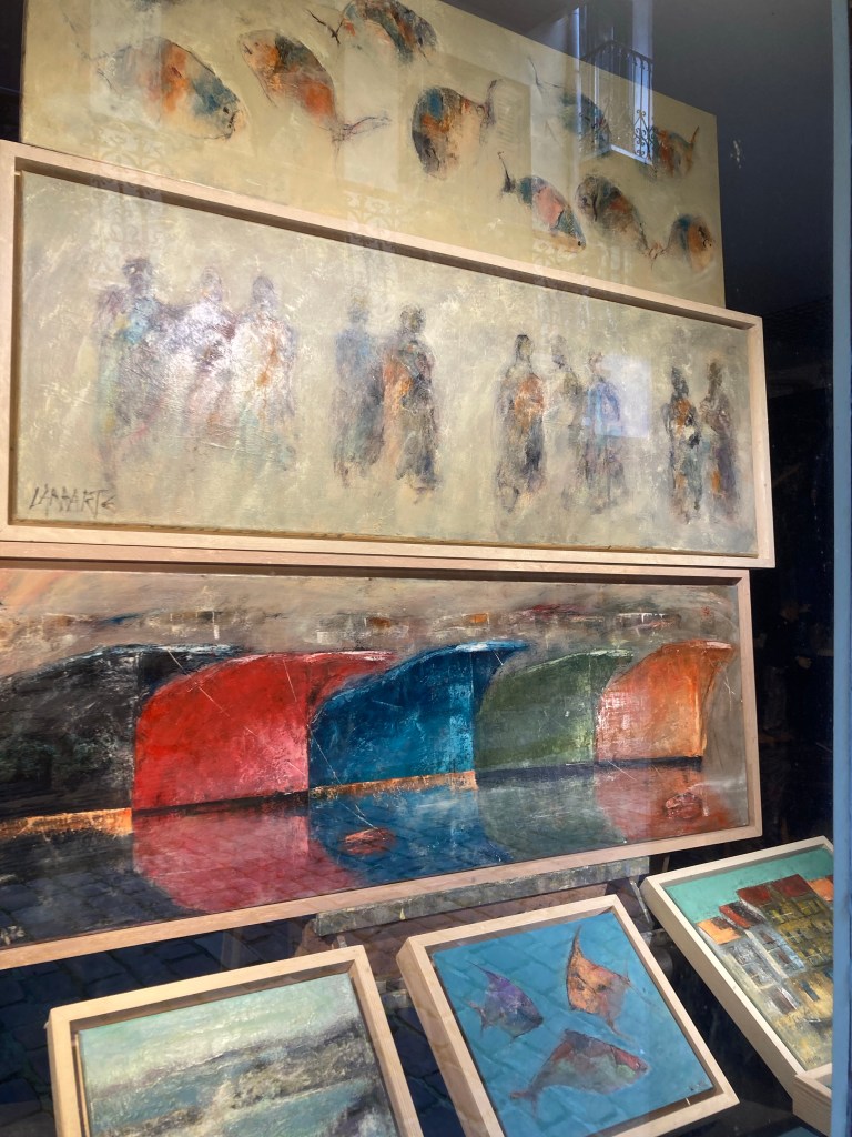 Puis une jolie boutique avec des peintures de Venise attire mon œil. De jolis tableaux avec des devants de gondoles qui se mirent dans l’eau.