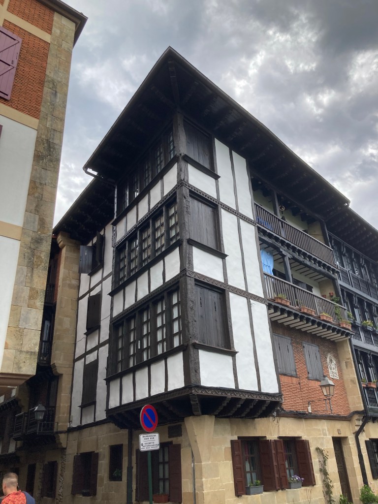 Ce qui est surprenant c’est que la base des maisons est en pierre de sable beige et à partir des premiers étages tout est en colombage. Colombage de bois mais aussi de briquettes rouges.