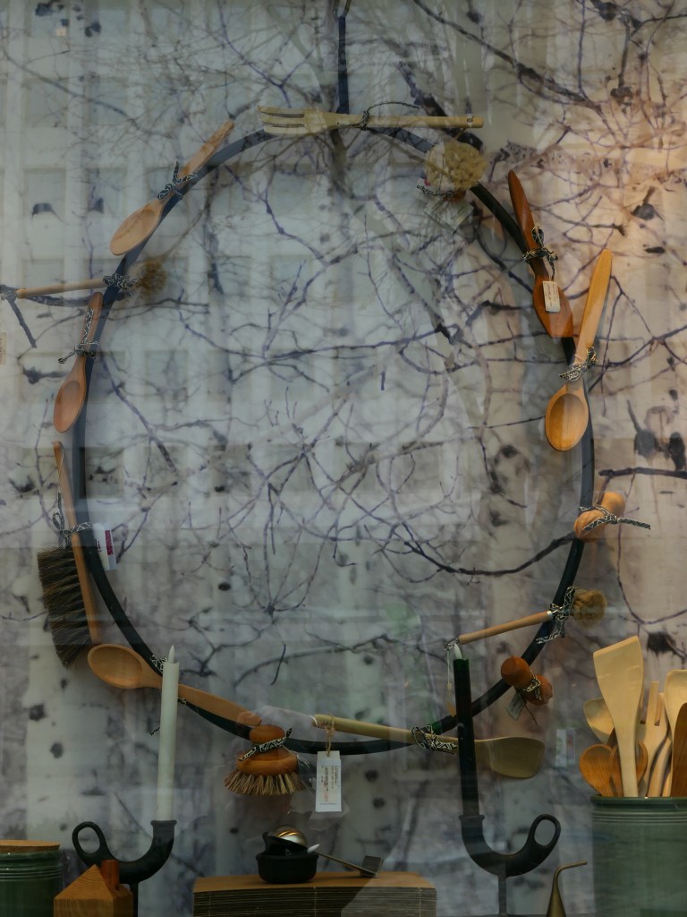On peut aussi voir dans certains magasins des cercles organisées autour des cuillères, des brosses et tout ustensiles de cuisine. Beaucoup de créativité à Bergen !