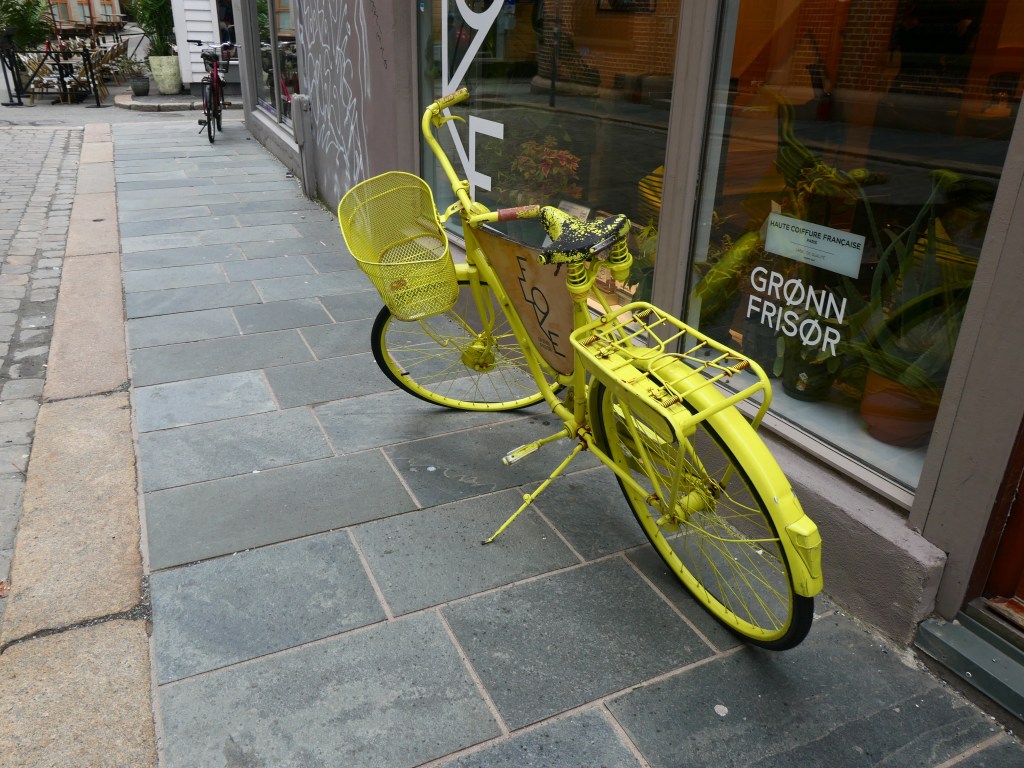 Les vélos font partie de la ville et j’en ai découvert un tout jaune devant une boutique.