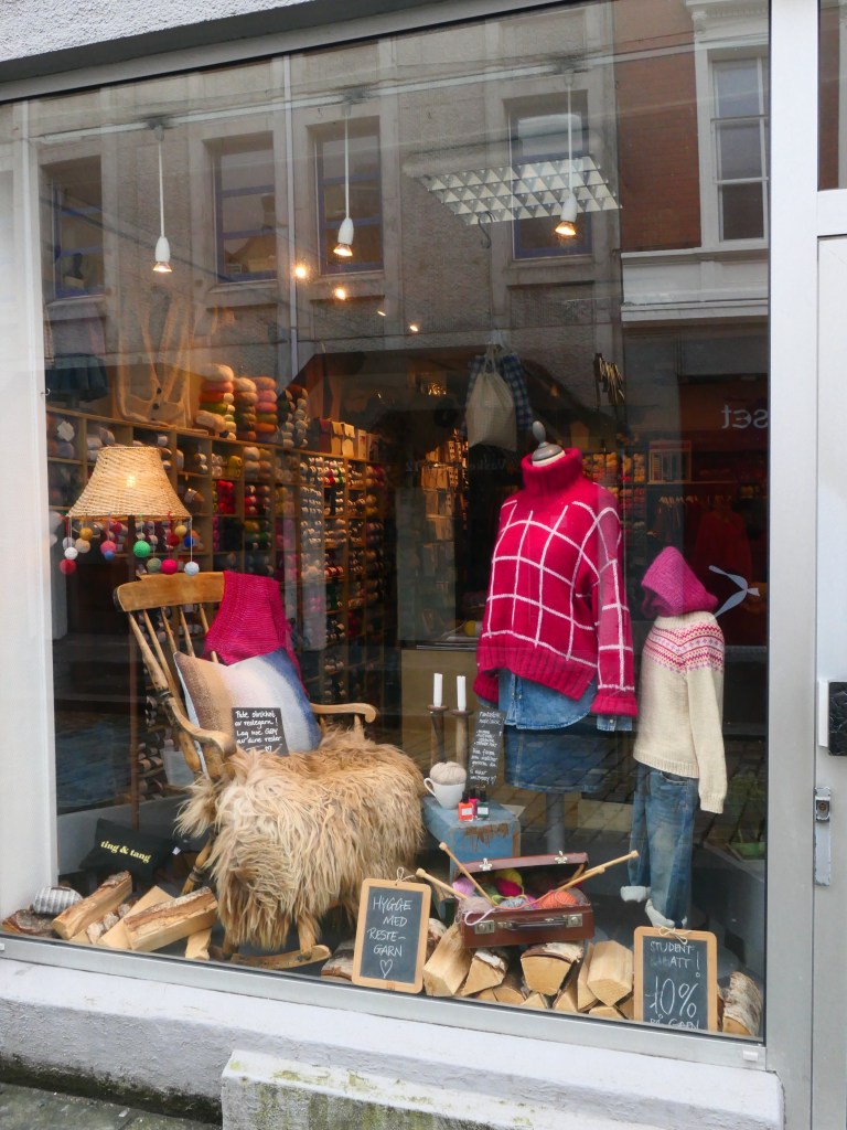 La laine et les gros pulls en laine soit bien grattant ou bien tout doux se font les rois de la ville – car il fait froid et ils égayent les vitrines avec des pelotes de laine colorée marron, rouille. On imagine que chaque famille tricote car il y a beaucoup de marchand de laine et de pulls. Je me suis d’ailleurs empressée d’aller m’acheter un bonnet car je me gelais les oreilles ainsi que de très jolis pulls.