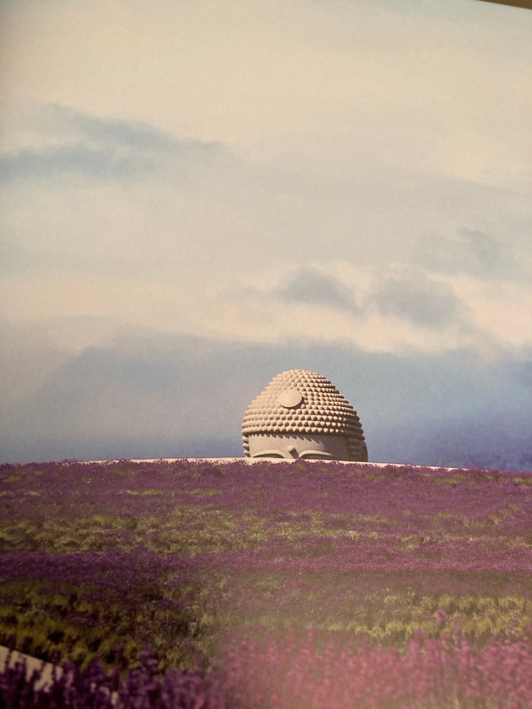 Mais l’envie de rencontrer Bouddha vous tenaille et vous vous approchez à pied de la colline ovale recouverte de 150 000 pieds de lavande. En juillet, c’est la meilleure période pour voir Bouddha dans la lavande. Hélas je suis arrivée trop tard et les fleurs avaient déjà été coupées et l’on ne pouvait gravir la colline pour apprécier de plus près la tête de Bouddha.