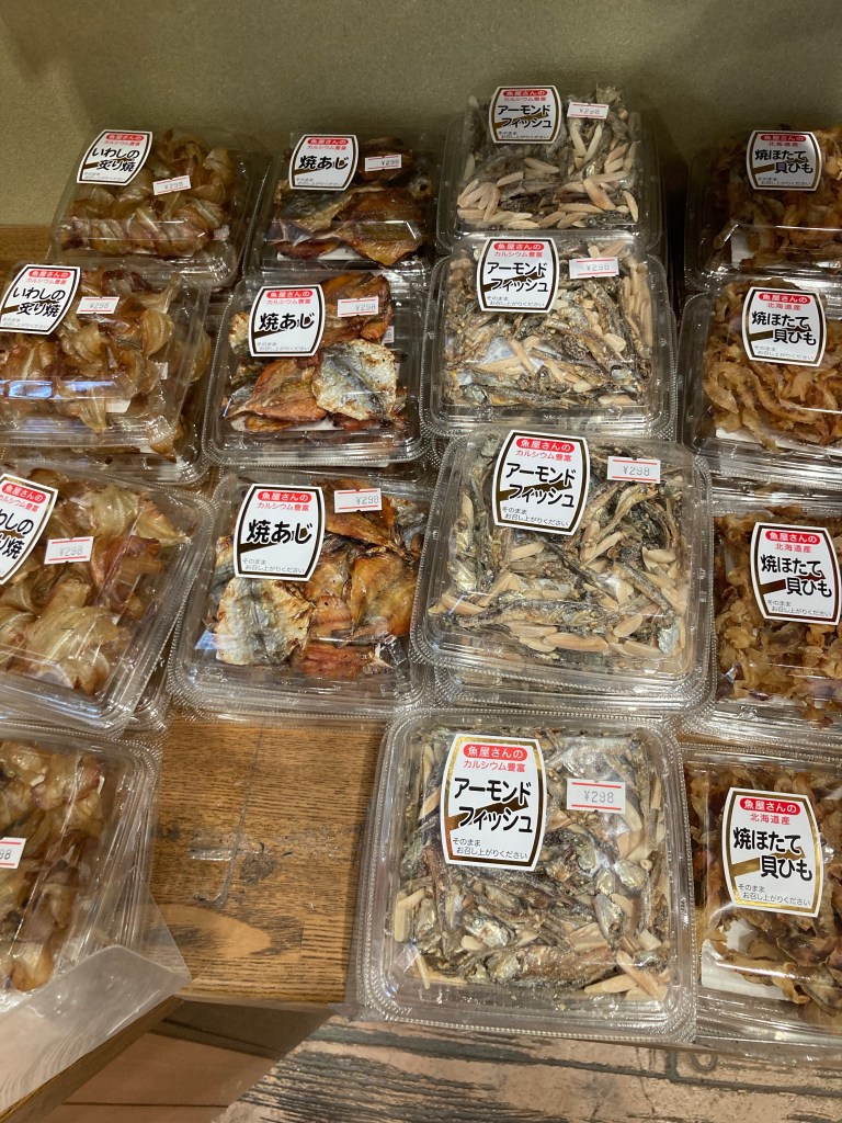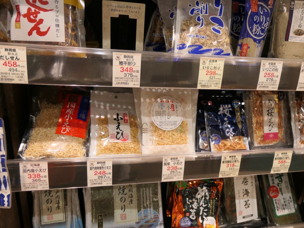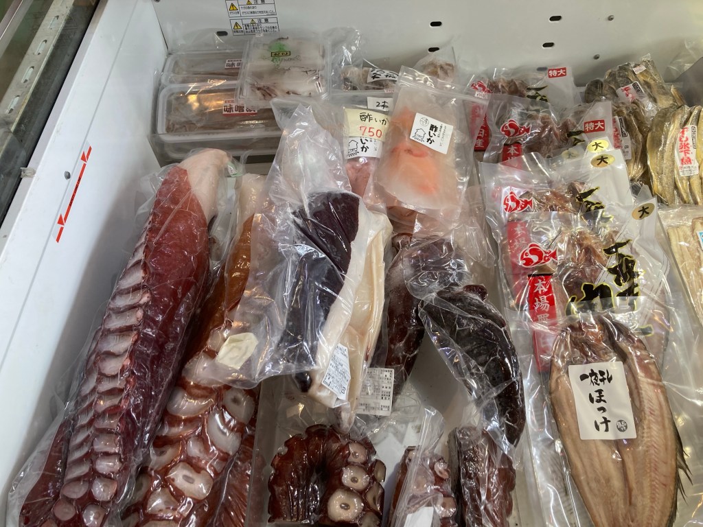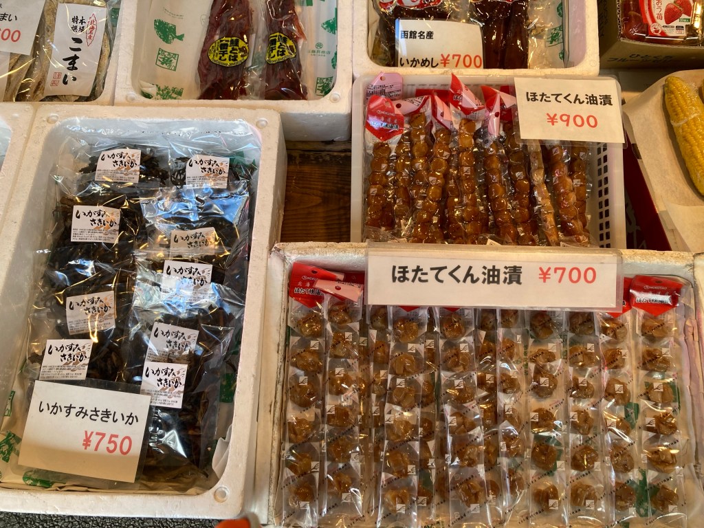 Des noix de coquilles saint Jacques séchées sous vide en grosse poche ou bien enveloppées une par une par dizaine (ne pas me demander comment on utilise le produit) et aussi fraiches que j’ai goutée (cela manquait de poivre et épices – les Japonais mangent peu épicé !)