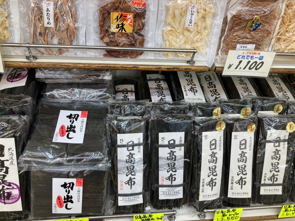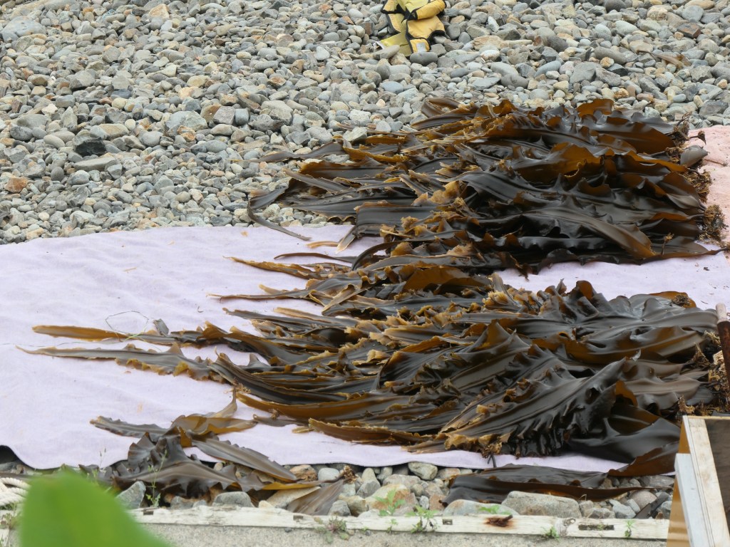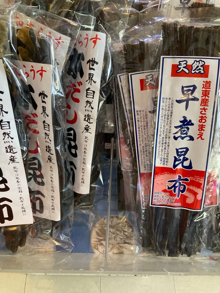 - Des algues noires fines ou larges bien enveloppées sagement dans du plastique et j’ai même vu sur la côte près de Rausu des grues déposer sur le sol des algues pour les faire sécher – il y en avait des tonnes !