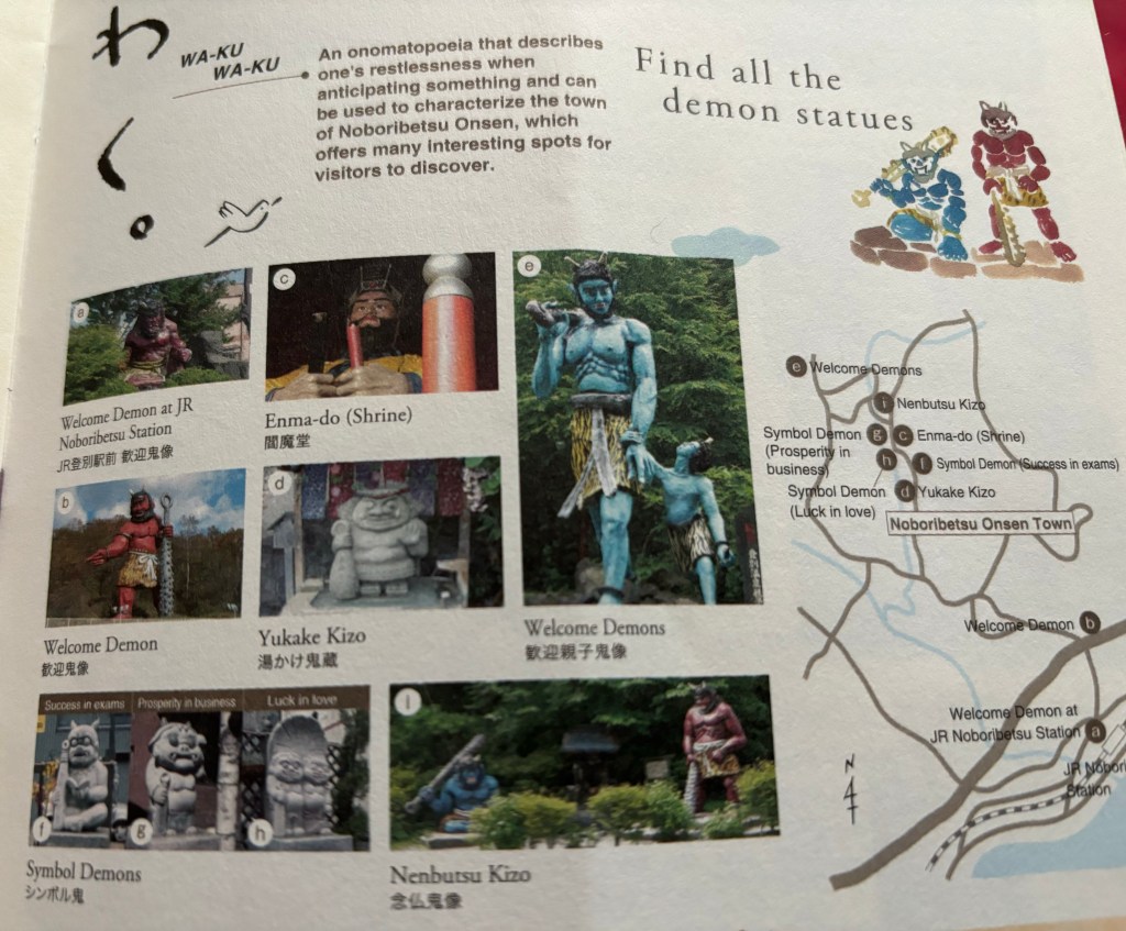 En arrivant dans la pseudo-ville de Noboribetsu vous êtes accueillis par un gros démon rouge effrayant qui vous montre la direction du diable.