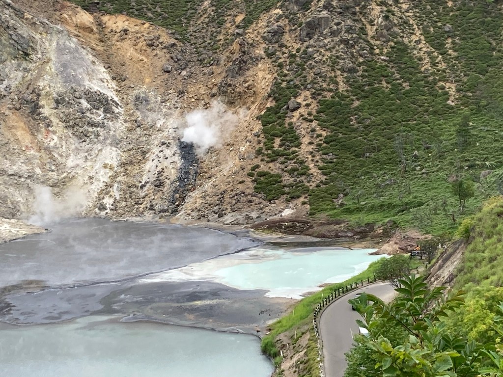 J’ai longé la forêt et les bois sur la route qui partait du parking et j’ai trouvé la route qui descendait vers le lac Oyunuma pour pouvoir l’admirer tout le long des lacets de la route qui atteignait le parking tout en bas.