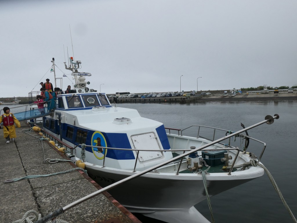 Arrivée à Rausu, chercher le port et le bateau ainsi que le lieu de rassemblement et hop sur le bateau et démarrage pour deux heures sur les flots à la recherche des baleines, des dauphins et des orques.