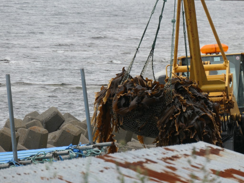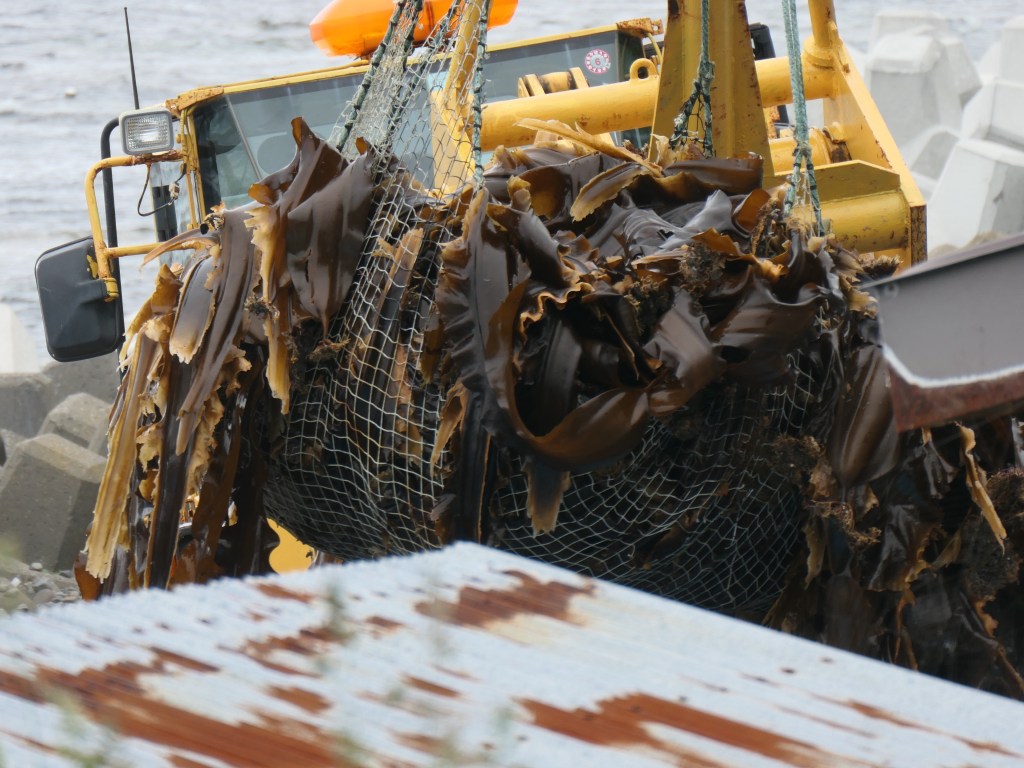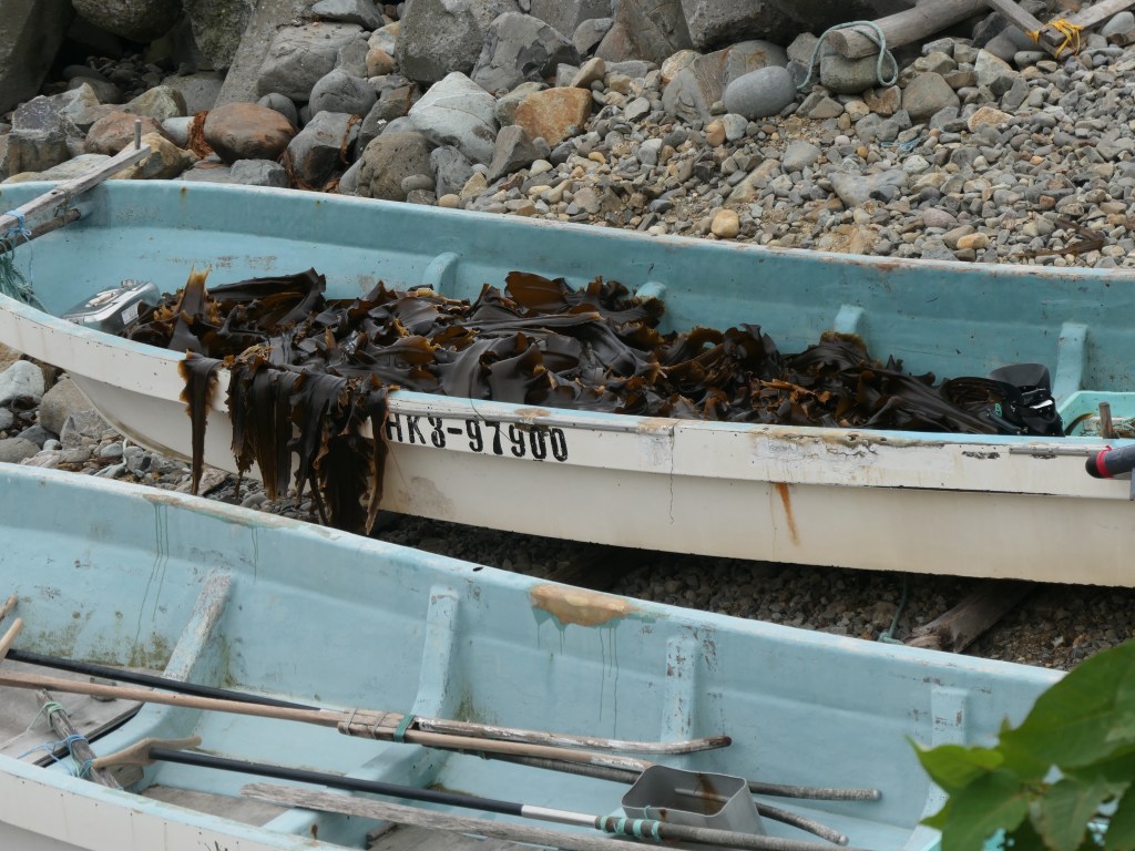 Tout le long de la route il y a des fermes marines où les gens trient les algues, certains les déposent avec des grues et les font sécher sur des bâches à même le sol en plein air. Cela ne sent pas très bon mais ce n’est pas très grave.