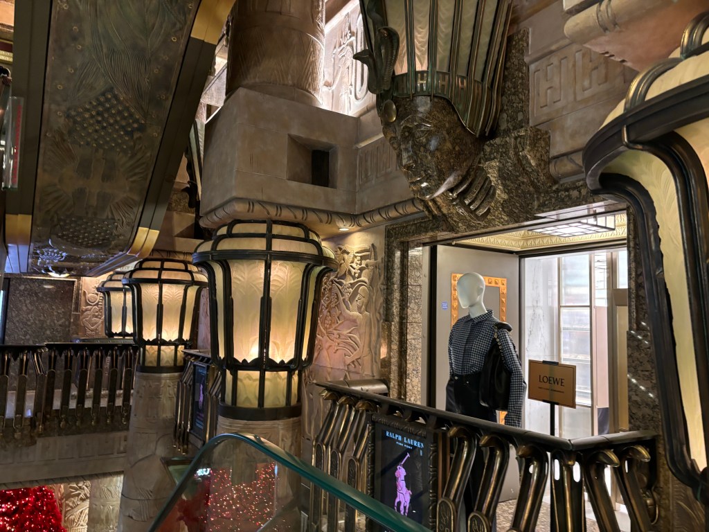 Je n’y suis pas allée pour des achats mais surtout pour aller admirer l’escalier central qui vous transporte en Egypte.