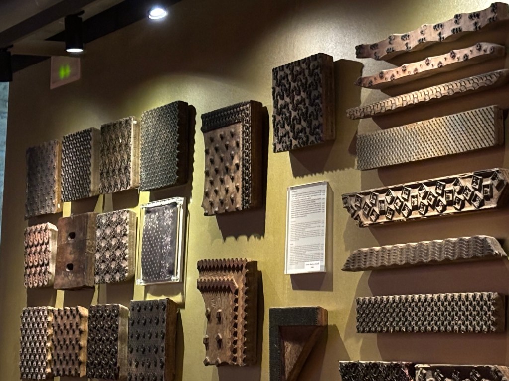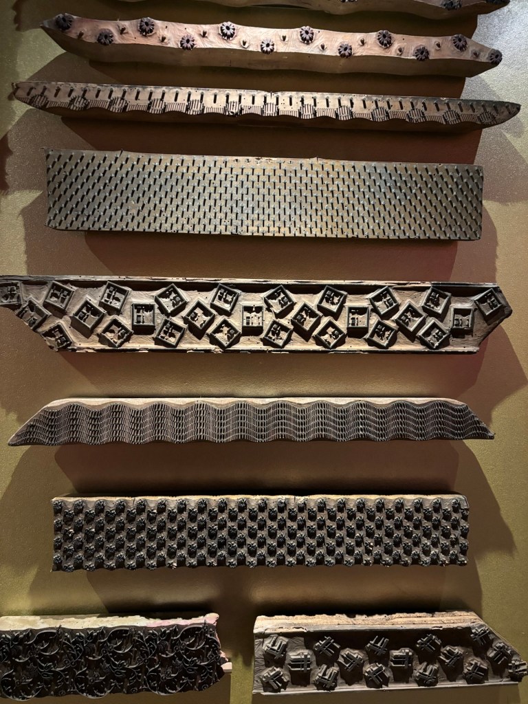 De magnifiques planches d’impressions sont présentées au mur du rez-de-chaussée qui montrent la créativité liée à la soie.