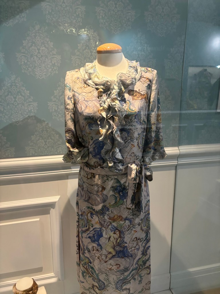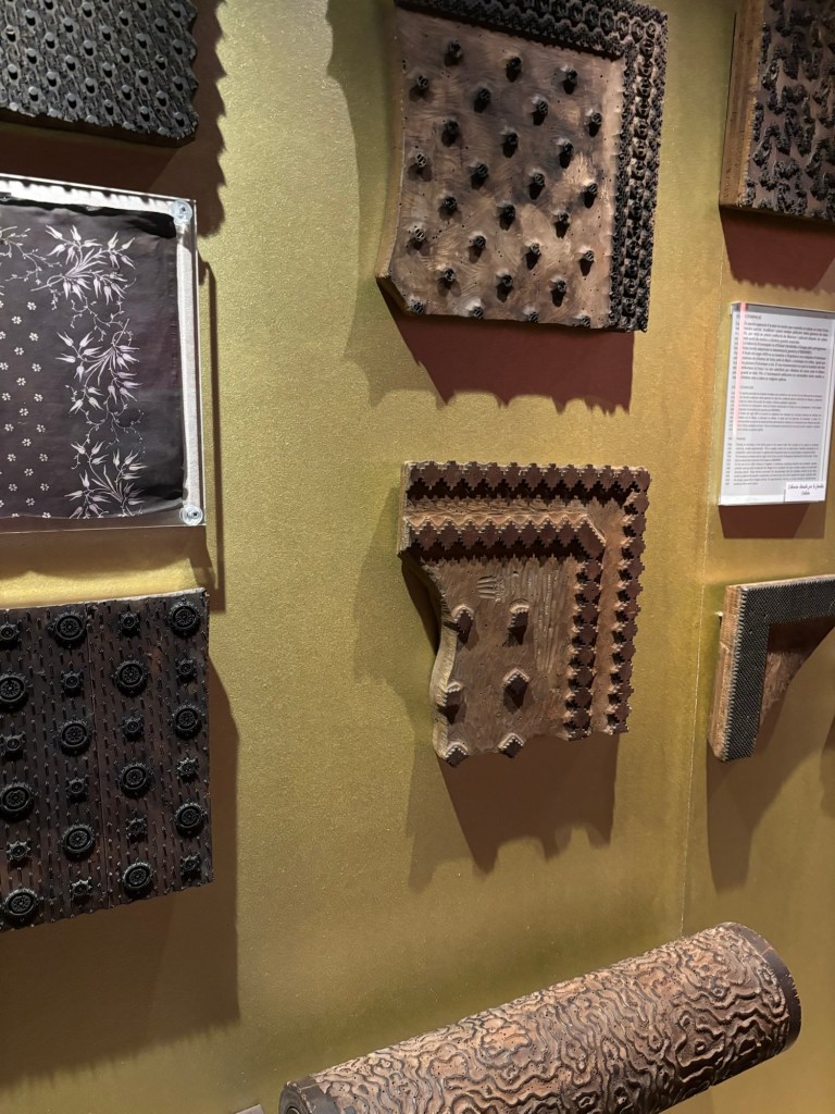 Puis on a droit à l’histoire de la soie avec les muriers, les vers à soie et le travail de transformation du vers à soie en fil de soie et le tissage ainsi que l’impression et les vêtements qui en émanaient.