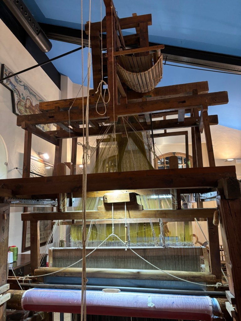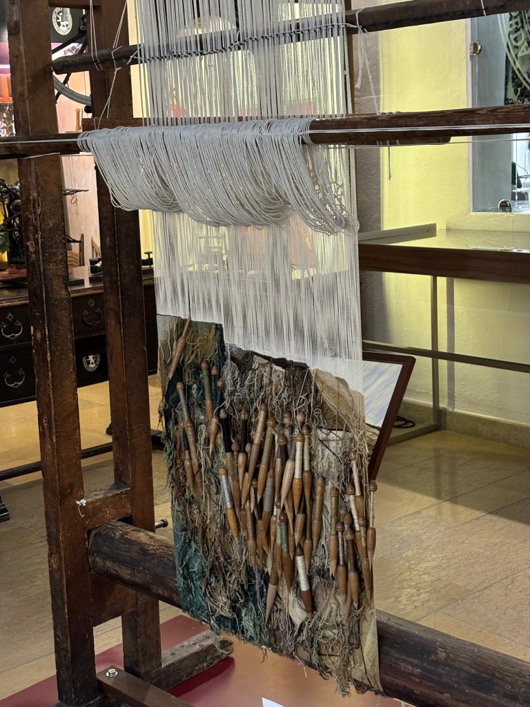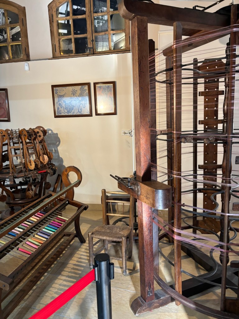 On peut même voir les métiers à tisser qui sont là en démonstration et les systèmes qui permettaient de tirer le fil à soie.