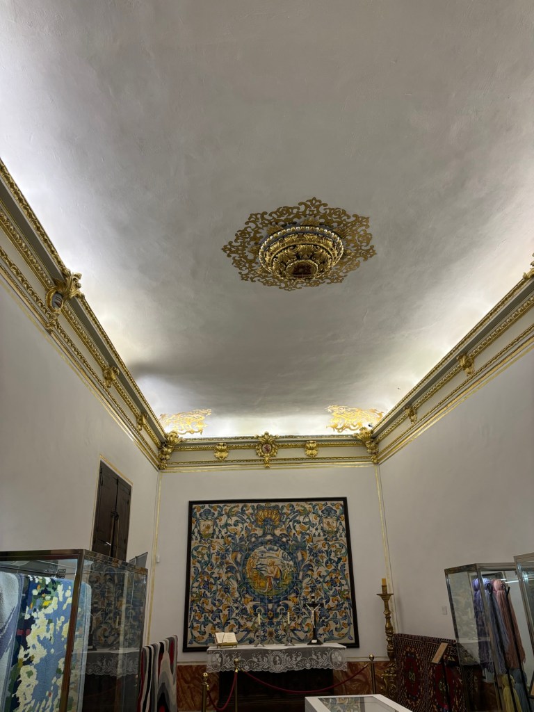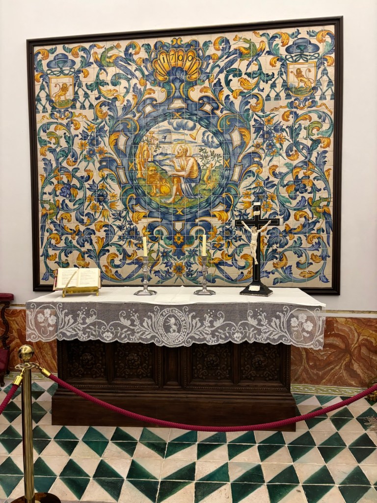 Dans une des salles on peut même voir un escalier en colimaçon caché derrière un mur. Une pure merveille ! On peut y découvrir aussi un autel avec une magnifique céramique bleue avec le Christ au centre entouré d’un lion.