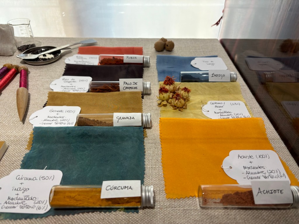 Et il y avait aussi dans une salle les épices qui permettaient de créer les couleurs. L’achiote pour le orange/ocre à mélanger avec d’autres produits par exemple.