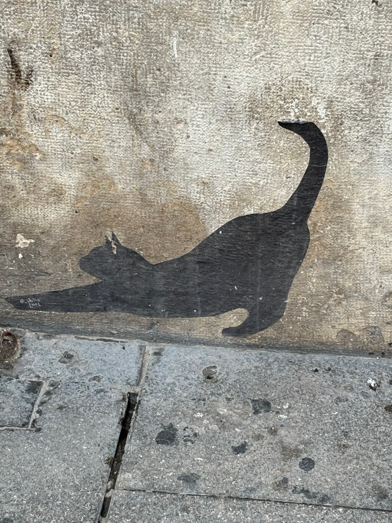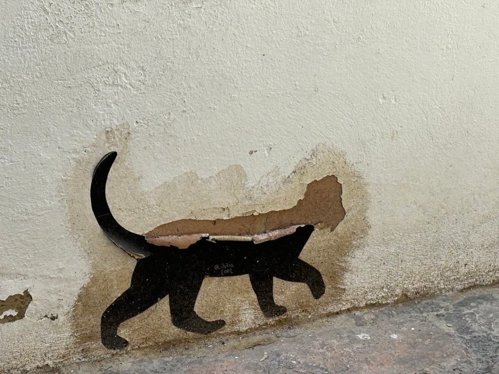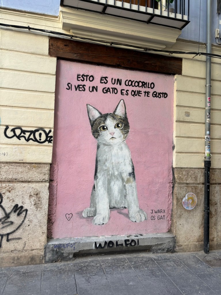 Et à nouveau ce chat noir le long du mur qui est soit assis, s’étirant ou marchant que l’on croise souvent dans Valencia.