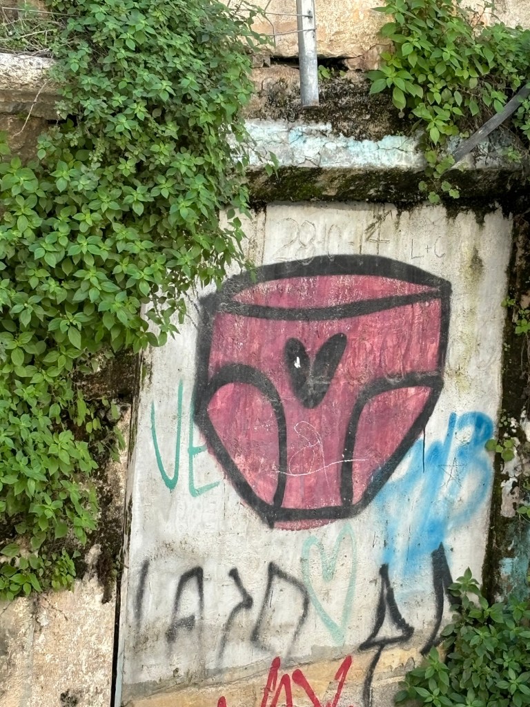 Et cette culotte rouge plantée là proche d’une église – quel en est la signification je ne sais pas !