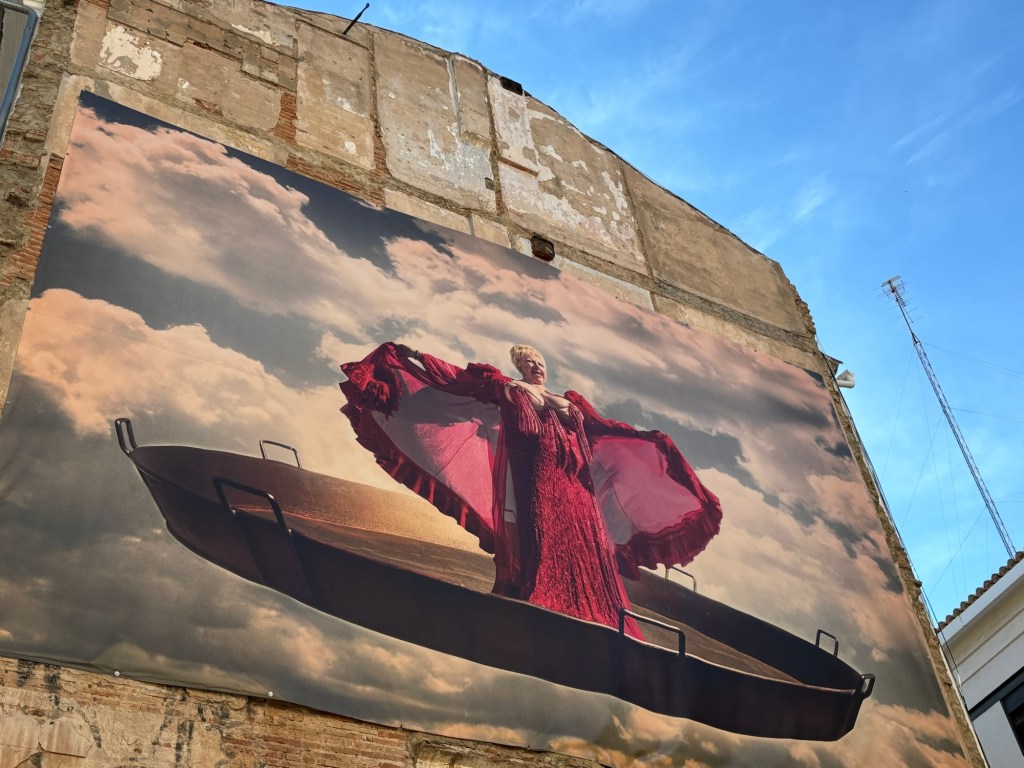 Et cette femme aux seins lourds dans sa robe rouge et sa cape ouverte, comme un ange prêt à l’envol de son plat de paella comme voulant échapper à une soucoupe volante avec tous ces nuages qui font comme des ailes.