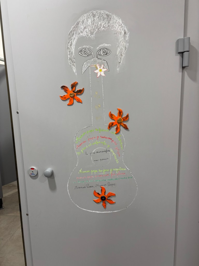 J’ai adoré la porte d’un WC pour homme où figure un dessin représentant G Brassens, sa guitare et des fleurs. Clin d’œil !