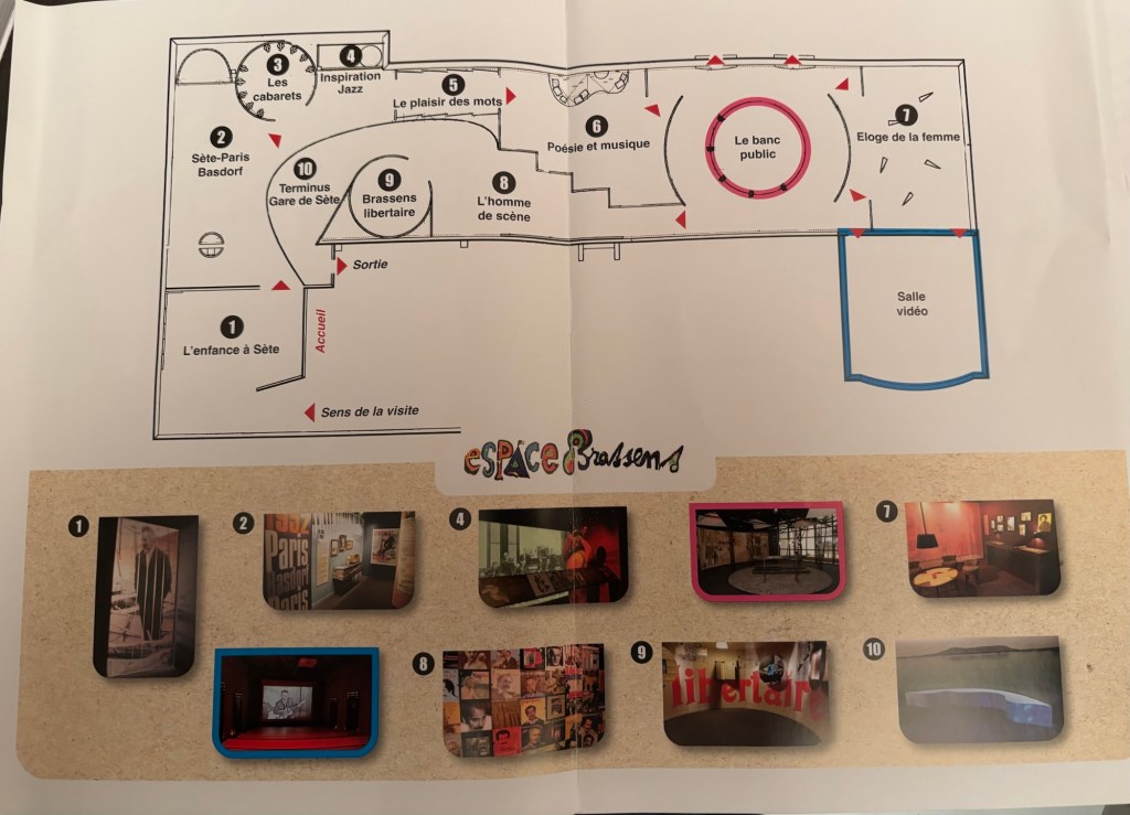 Sept salles que l’on parcoure avec un casque sur les oreilles à la découverte de la vie de G Brassens. Et c’est lui qui nous promène dans ces lieux.
