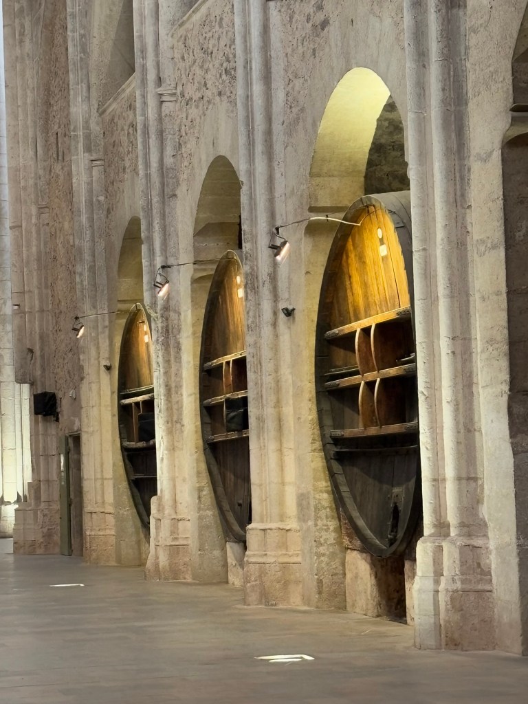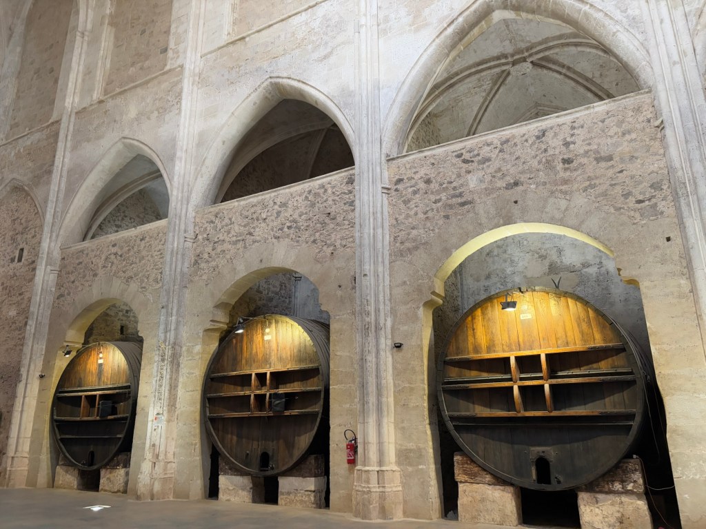 Et puis dans les bas-côtés de la nef des foudres vinaires de 400 hectolitres font la particularité de cette abbaye et nous remémore que nous sommes dans une région viticole. Ils ont été installés en 1820 pour transformer l’église en chai et échappa à la destruction. Juste pour le fun les chais ont été réalisé en chêne provenant de Russie ! Chais qui ne sont plus utilisés de nos jours.