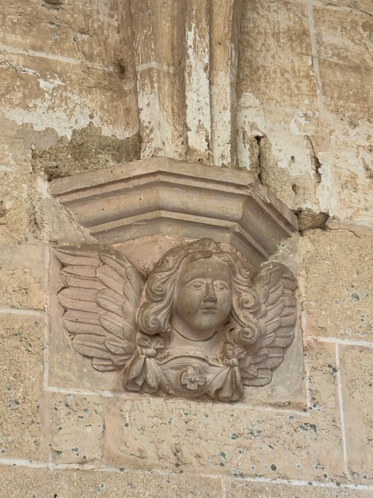 Tous les piliers soutenant la fondation sont tenus par des têtes d’anges.