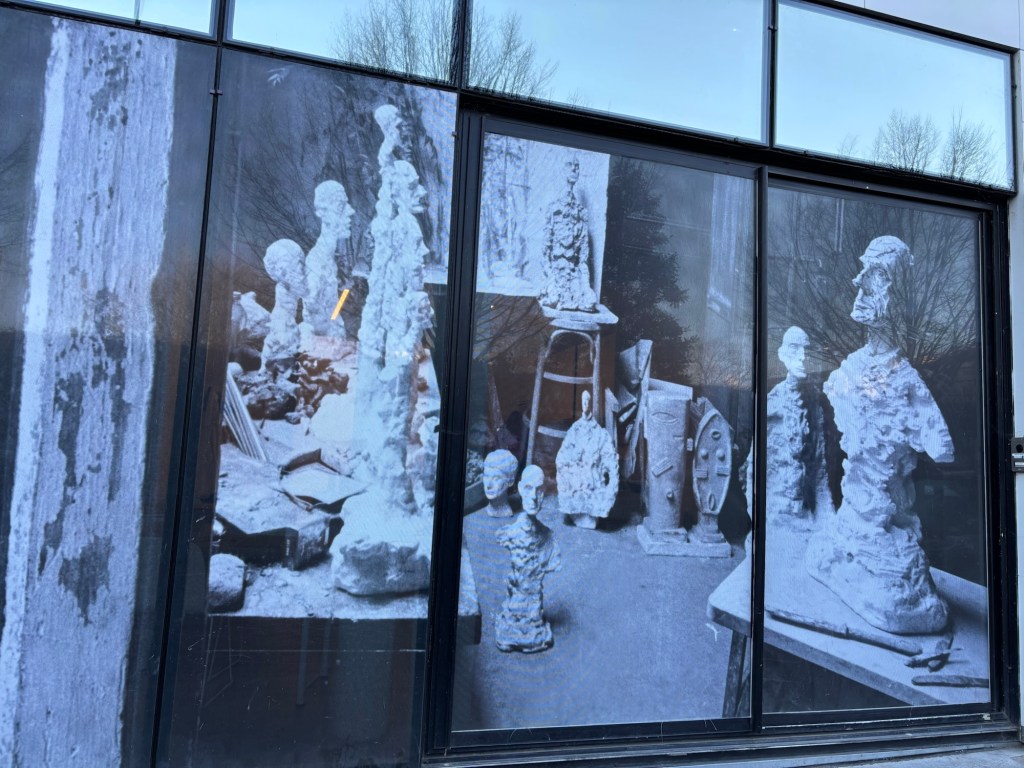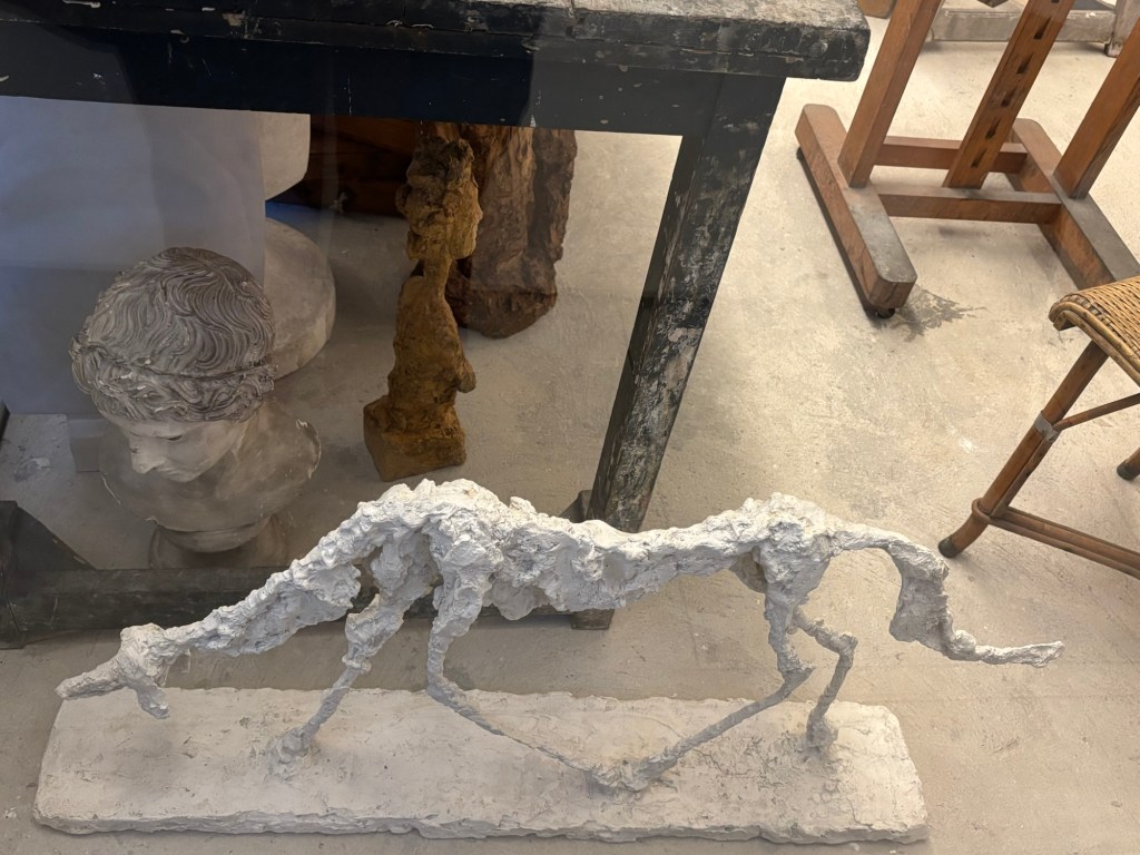 Le chien longiligne, maigre a attiré on œil, coincé contre une table et la vitre qui protège le lieu. On aurait juste envie que Giacometti sorte des murs.