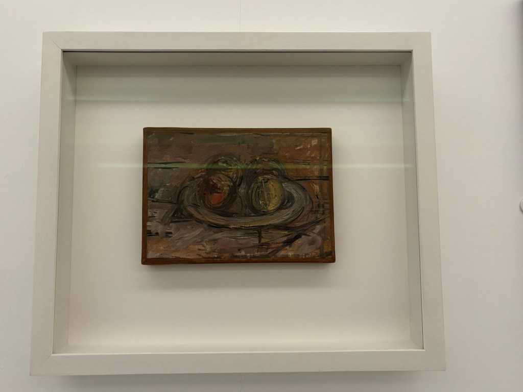 Puis on passe par des petits couloirs devant d’autres réalisations « homme dans une cage » et on finit dans une pièce étroite en descendant trois marches où se trouvent des peintures et des croquis de Morandi et Giacometti. Leurs œuvres sont inspirées par Cézanne, Giotto et Rembrandt.