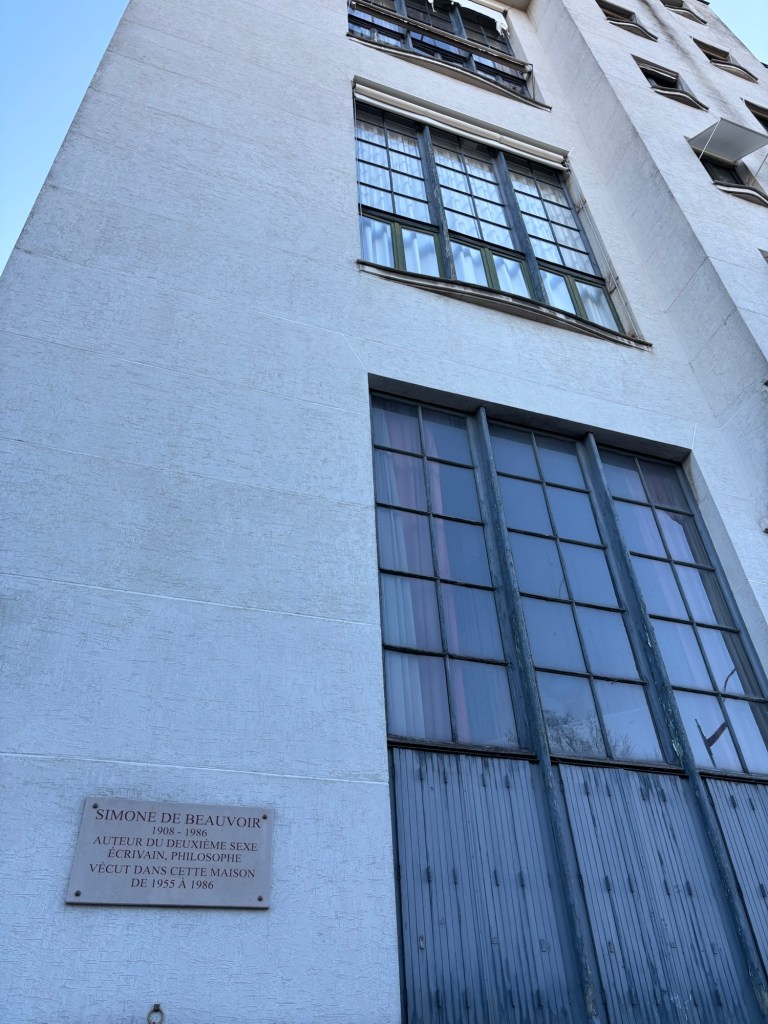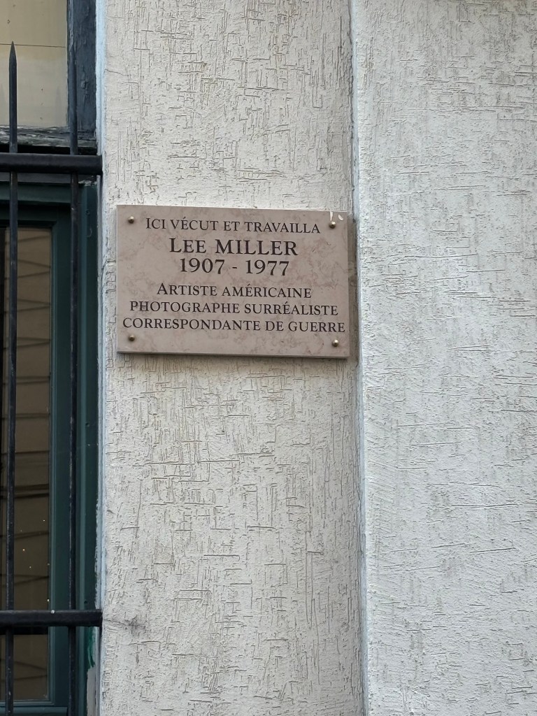 En ressortant vous verrez sur un immeuble le rez-de chaussée avec Giacomettti Lab, les photos comme des négatifs qui représentent ses œuvres. Et un peu plus loin Simone de Beauvoir a vécu dans un immeuble Art déco de 1955 à 1986 ; et au coin de la rue Lee Miller la reporter de guerre vécut aussi en ce lieu aussi, rue Victor Considérant. Un œuvre de Street-art trône avec un homme au chapeau, un parapluie vert sur la tête et un trombone dans les mains.